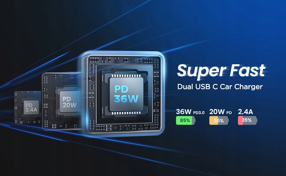 【36 Вт PD и 36 Вт QC 3,0 Супер быстрая зарядка】 это автомобильное зарядное устройство mini 12V USB C с PD 3,0 (36 Вт) и QC 3,0 (36 Вт) двойной порт для максимизации скорость зарядки устройства, которая может полностью заряжать iPhone 13 от 0% до 80% и Samsung Galaxy S22 в течение 1 часа в течение 30 минут. [Примечание: 1. Он поддерживает одновременную зарядку 2 устройств, но не одновременную зарядку Superfast. 2. PD-соединение поддерживает Samsung 25W Super Fast Shop].