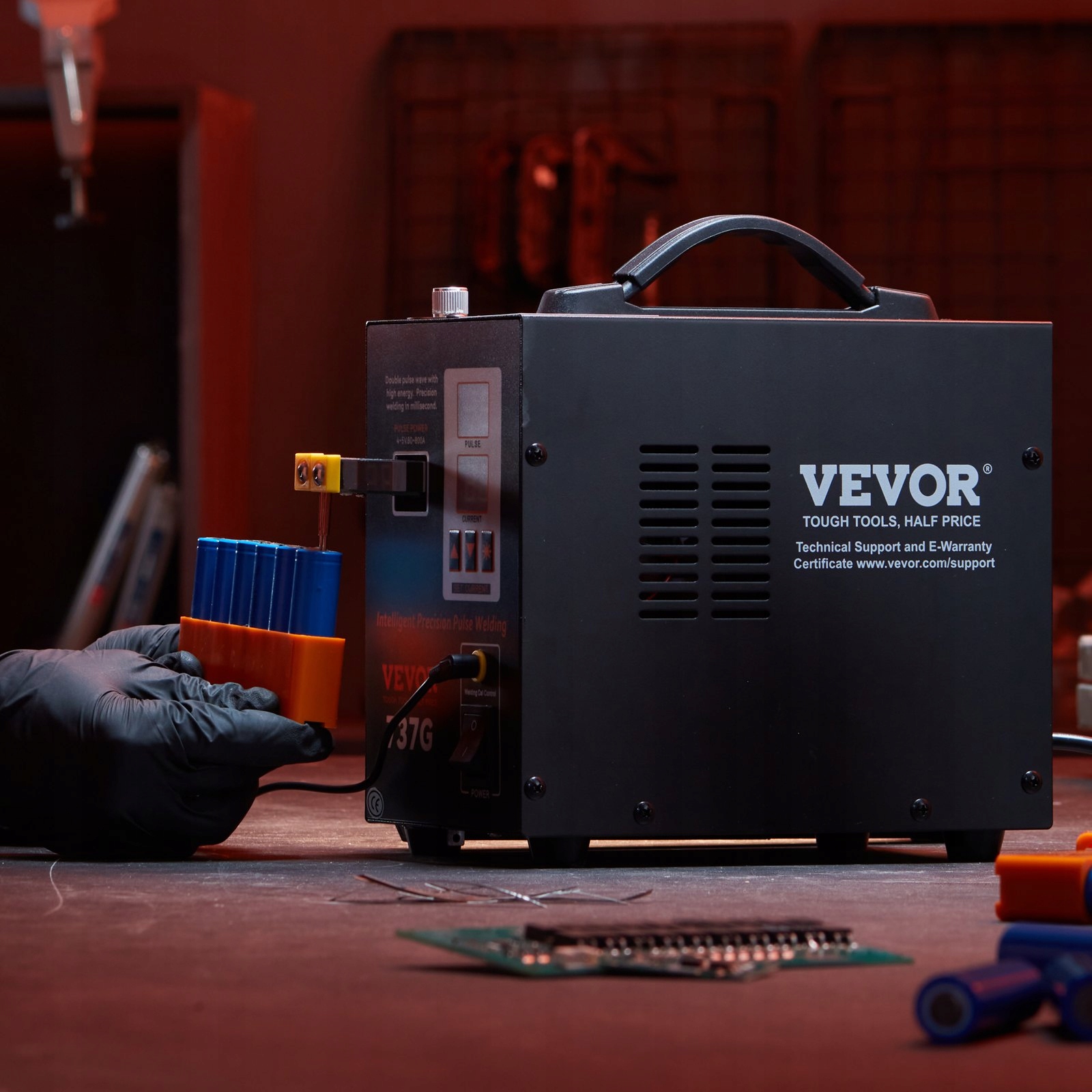 Аккумуляторная точечная импульсная сварочная машина VEVOR 737g компактна, легка и удобна в транспортировке благодаря ручке. По сравнению с традиционными, большими и громоздкими точечными сварочными аппаратами, он меньше, легче, но одинаково прочен и надежен с точки зрения функциональности.п>
