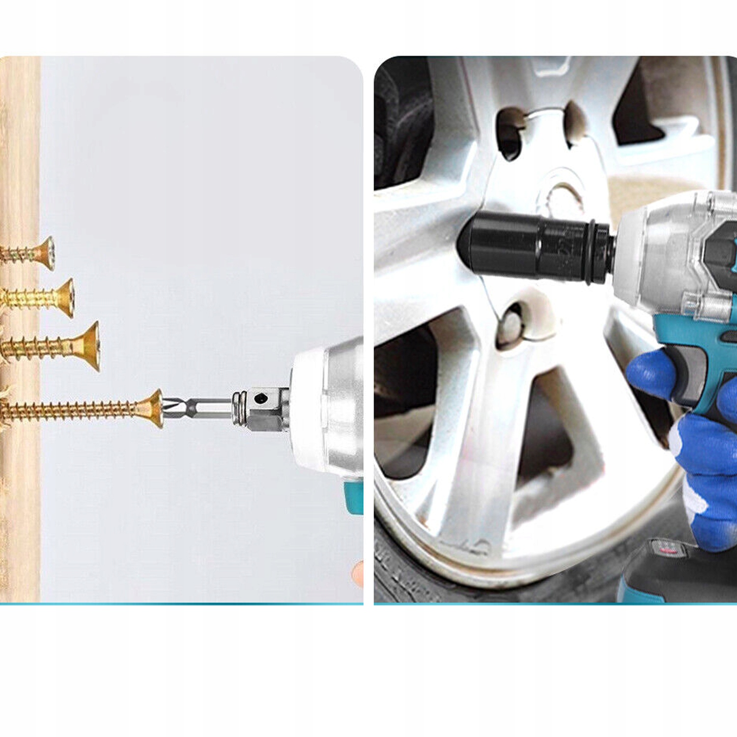 ☑️Беспроводной ключ 21 В, питается от аккумулятора особой мощности двигателя. Он состоит из прочной алюминиевой головки, хорошего уплотняющего эффекта и вращающейся волны из вольфрамовой стали.