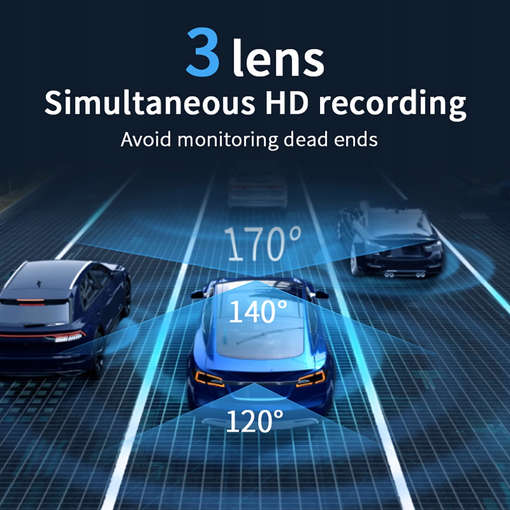 Одновременная запись в высоком разрешении с трех камер во избежание контроля слепых зон.