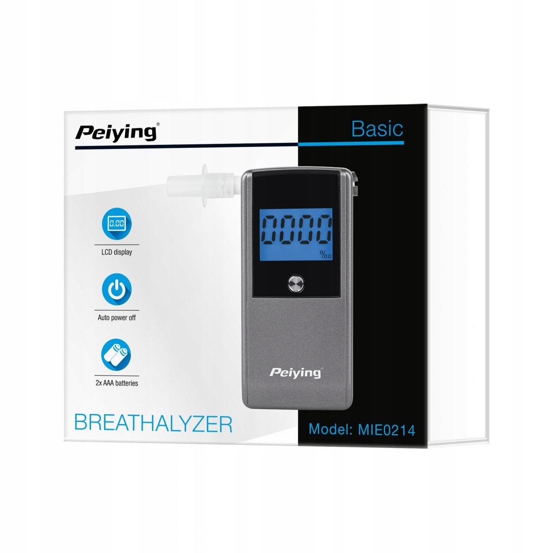 Peiying KT-571 с электрохимическим сенсором нового поколения - это очень полезное устройство, которое пригодится вам, когда перед вами трудное решение-ехать или еще нет. Алкотестер имеет ряд функций, m.in. датчик прерывания воздушного потока, а также звуковая сигнализация, подтверждающая непрерывность выхлопа, которые гарантируют надежное и точное чтение с точностью до 0,005%. Дополнительным преимуществом устройства является возможность изменения единиц измерения на%, ‰ или мг / л и функция запоминания последних пяти измерений. алкотестер также имеет счетчик общего количества выполненных измерений, что полезно для расчета времени повторной калибровки (через 12 месяцев или после выполнения 200 измерений).