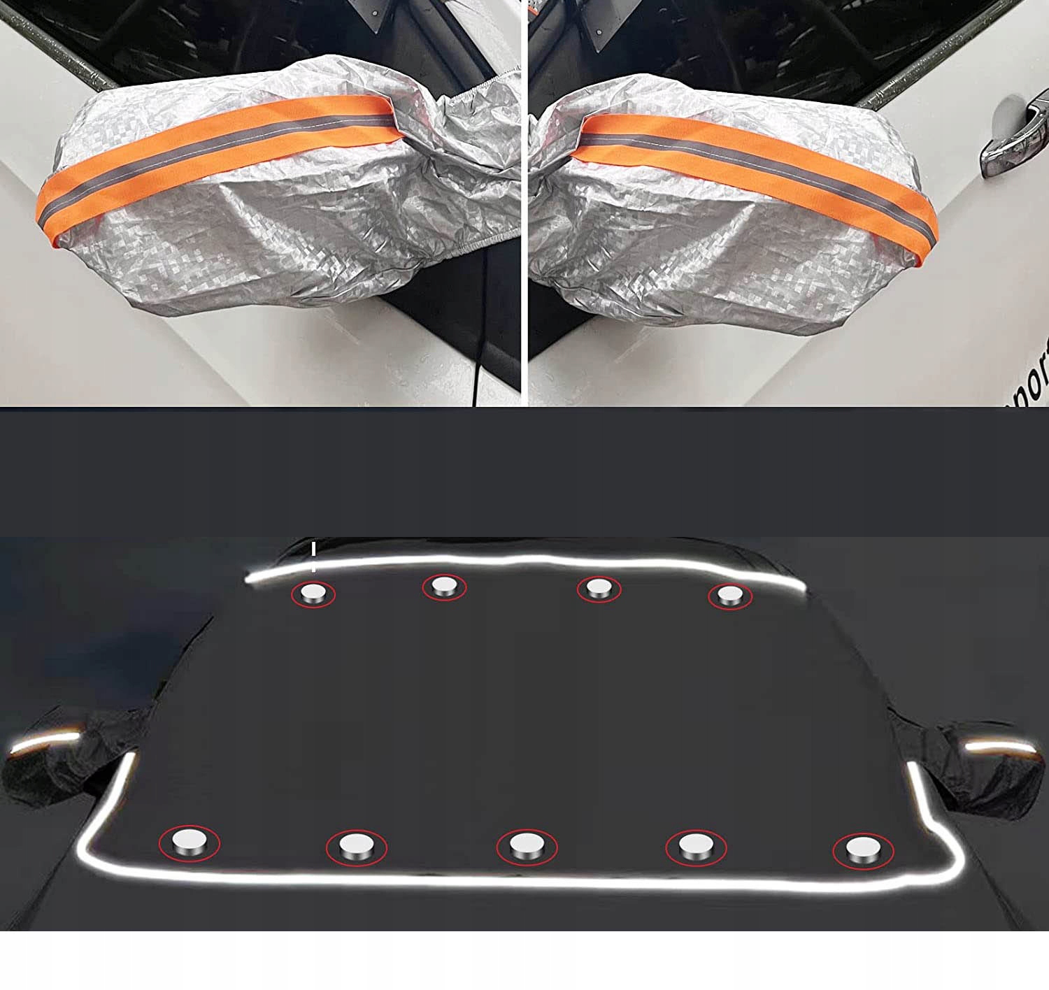 【Универсальный размер】 размеры складной крышки окна автомобиля составляют 120 см x 180 см (без боковой заслонки), а длина одной заслонки составляет 48 см. Наши ветровые стекла подходят для большинства транспортных средств и идеально подходят для седанов, внедорожников, грузовиков, минивэнов и фургонов. 【Использование в любое время года】Магнит на лобовое стекло подходит для любого сезона. Зимой ветровое стекло защищает его от мороза и снега и сокращает время, которое вы тратите на утреннюю очистку льда или снега. Защита лобового стекла автомобиля от высоких температур и ультрафиолетовых лучей летом может эффективно защитить дворники и эффективно охладить интерьер автомобиля. 【4-слойный композитный материал & amp; цельные светоотражающие полосы】передняя магнитная Зимняя крышка изготовлена из 4-слойного композитного материала (высококачественное алюминиевое покрытие из спанлейса из хлопка с мягкой подкладкой), который является устойчивым к разрыву, термостойким, очень прочным и долговечным. Благодаря светоотражающим полосам по всему краю чехла зима может быть припаркована у дороги ночью. Отскок может уменьшить столкновение проезжающих транспортных средств, это работает безопасно и надежно. 【Стабильный Windscreen Cover】с 9 магнитами, которые могут быть прикреплены к ветровому стеклу автомобиля, обладают сильной адсорбционной способностью и, следовательно, хорошей силой склеивания. Резиновые ленты на крышках зеркал и боковые молдинги между дверями могут еще больше подтянуть крышку лобового стекла. Этот зимний предмет идеально подходит для сильных ветров и снега зимой. [Простота установки и хранения】 устанавливается за считанные секунды без присосок или клея (серебряной стороной вверх). Когда ветровое стекло не используется, оно складывается и снимается для удобного хранения и транспортировки, не занимая места. Если у вас есть какие-либо проблемы с нашей защитой от замерзания автомобиля, мы ответим Вам в течение 24 часов.