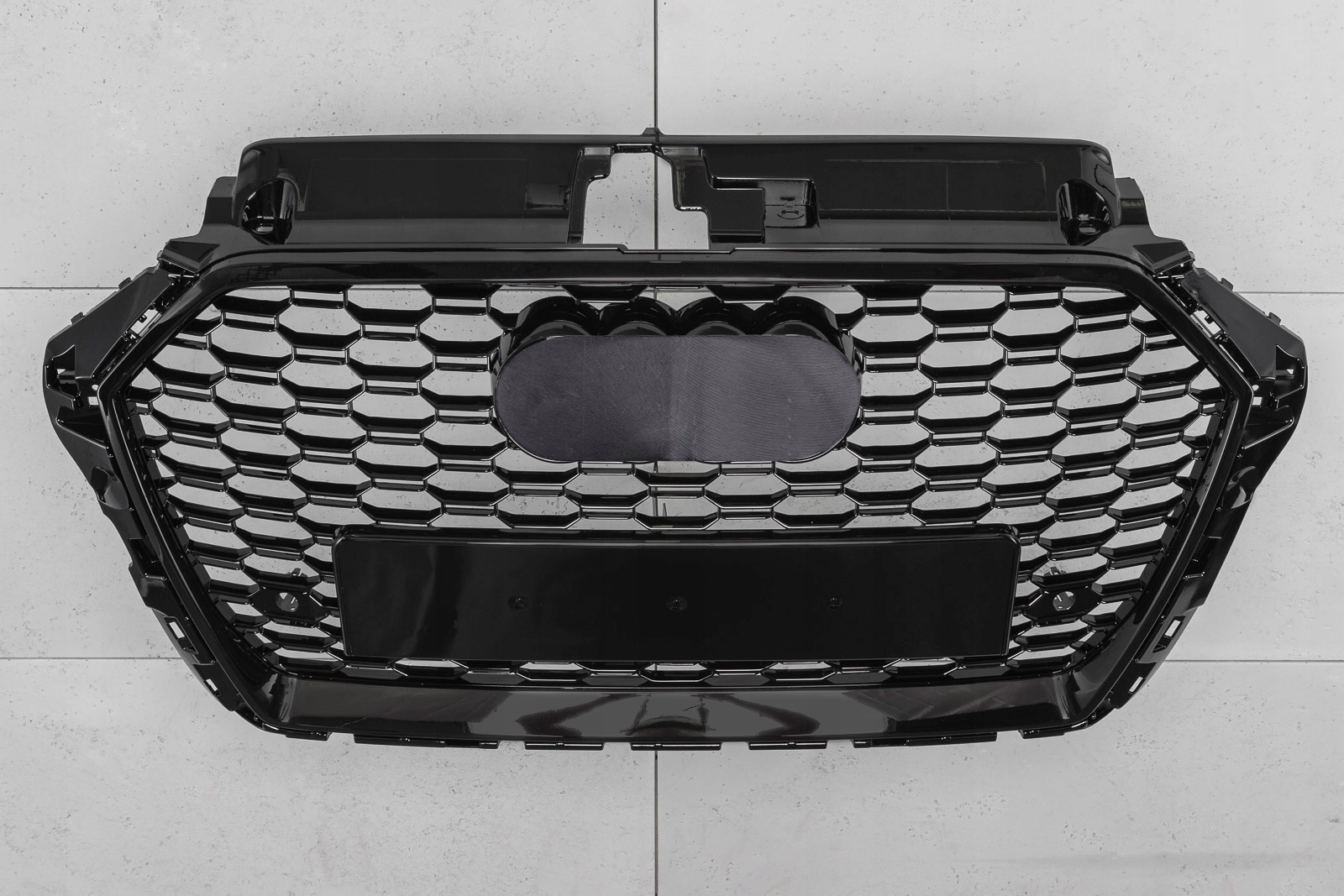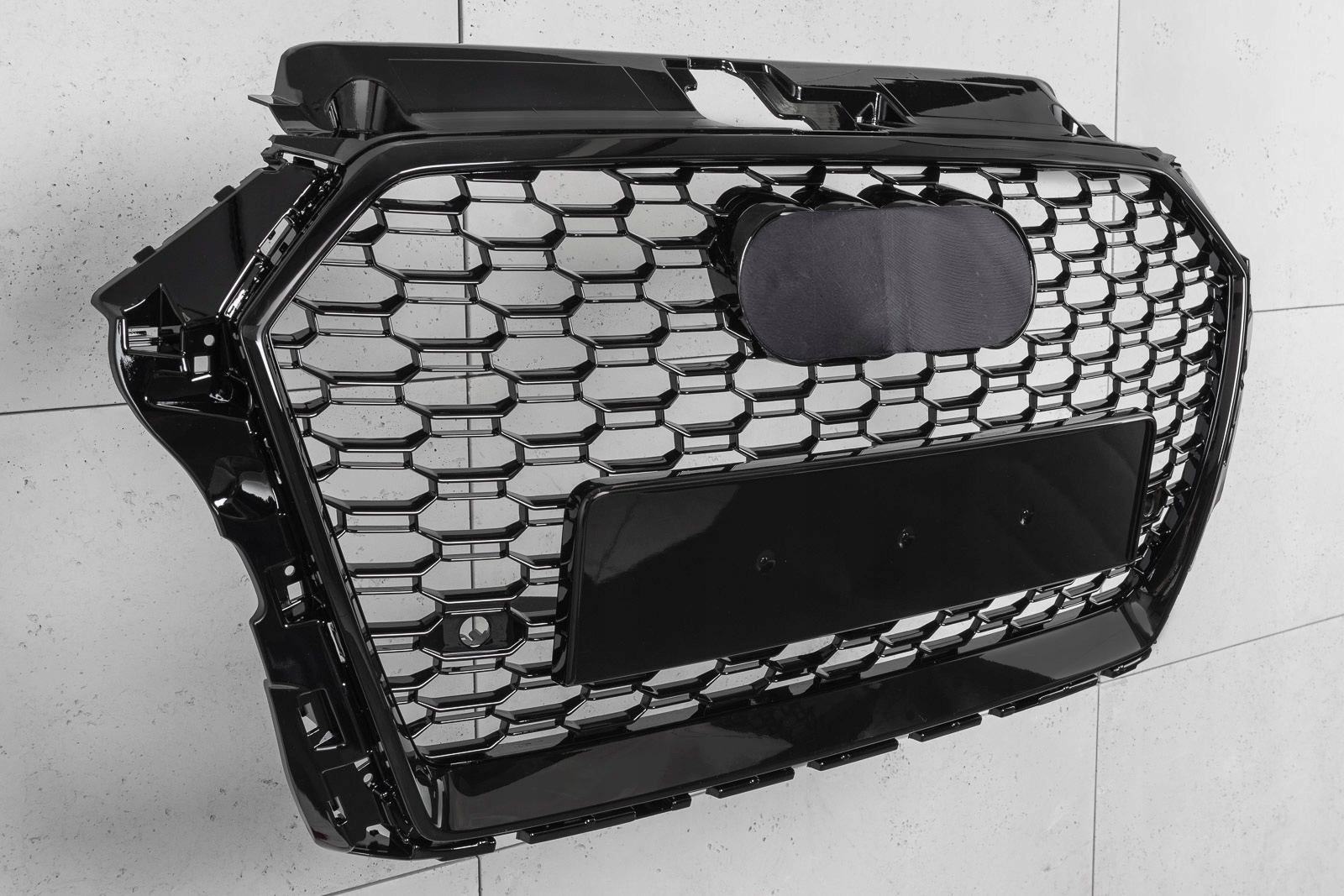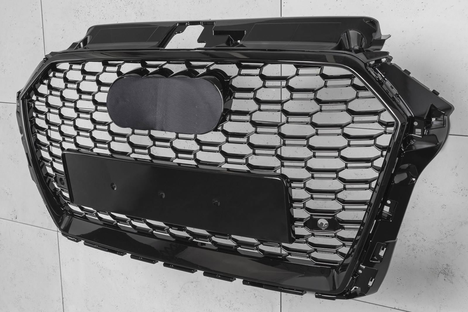 После установки решетка позволяет создать совершенно новый стиль «гражданского» AUDI A3, стилизовав его под спортивную версию RS3. В решетке имеются отверстия для парктроников PDC.