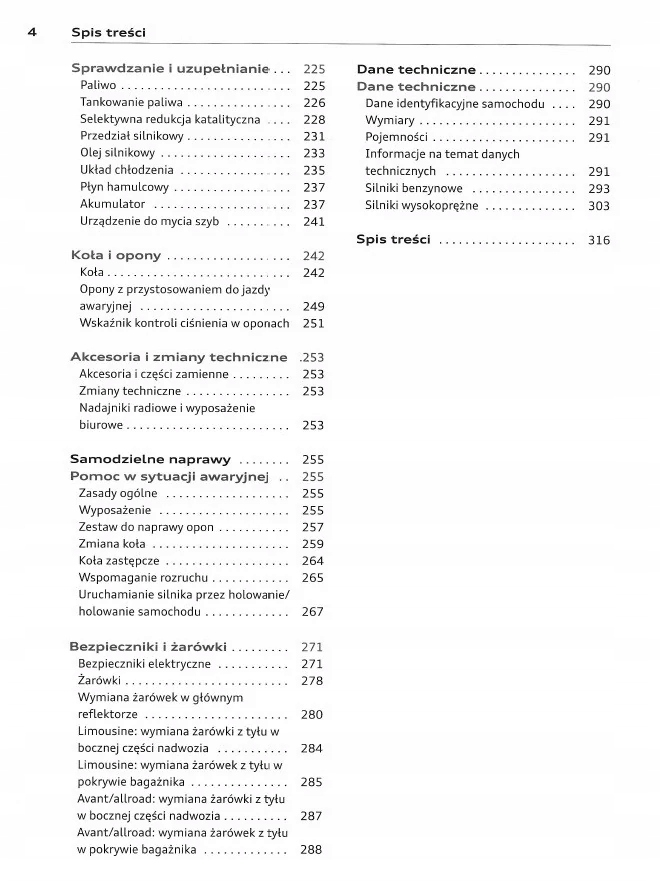 руководство по эксплуатации audi содержит все комплектации и полезную информацию о том, как эффективно и безопасно использовать автомобиль, например-индикаторы, контрольные лампы, Открытие и закрытие-освещение и видимость, сиденья, отсеки для хранения, отопление, вентиляция, кондиционер-вождение, руководство по эксплуатации, техническое обслуживание автомобиля-уровни жидкости, проверка и заправка, аварийные действия, замена колес, предохранители, замена лампочек-технические характеристики... и многие другие вещи, которые дают ощущение безопасности и комфорта путешественникам.Польское польское законодательство налагает на продавца обязанность прилагать инструкции по эксплуатации автомобиля на польском языке к. Руководство по эксплуатации автомобиля новое и на польском языке.п>
