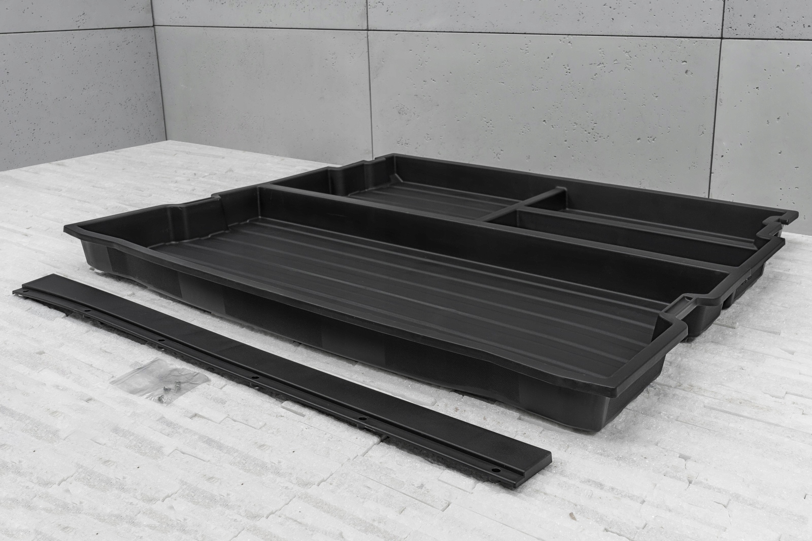 Прессованный пластиковый картридж позволяет превратить отсек запасного колеса в практичный органайзер. Картридж позволяет удобно хранить необходимые инструменты и аксессуары. Основное отделение можно разделить на две меньшие части с помощью прилагаемого отсека.п>