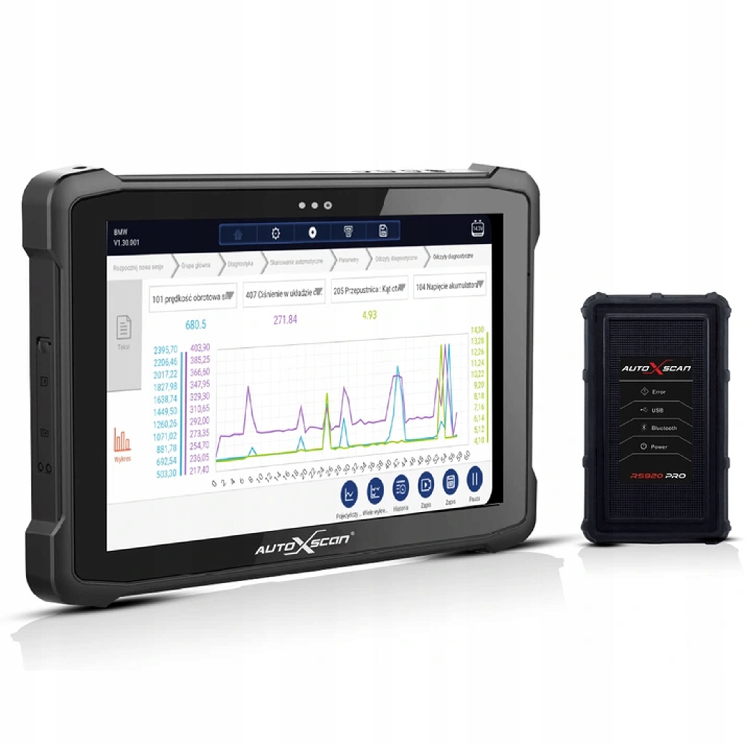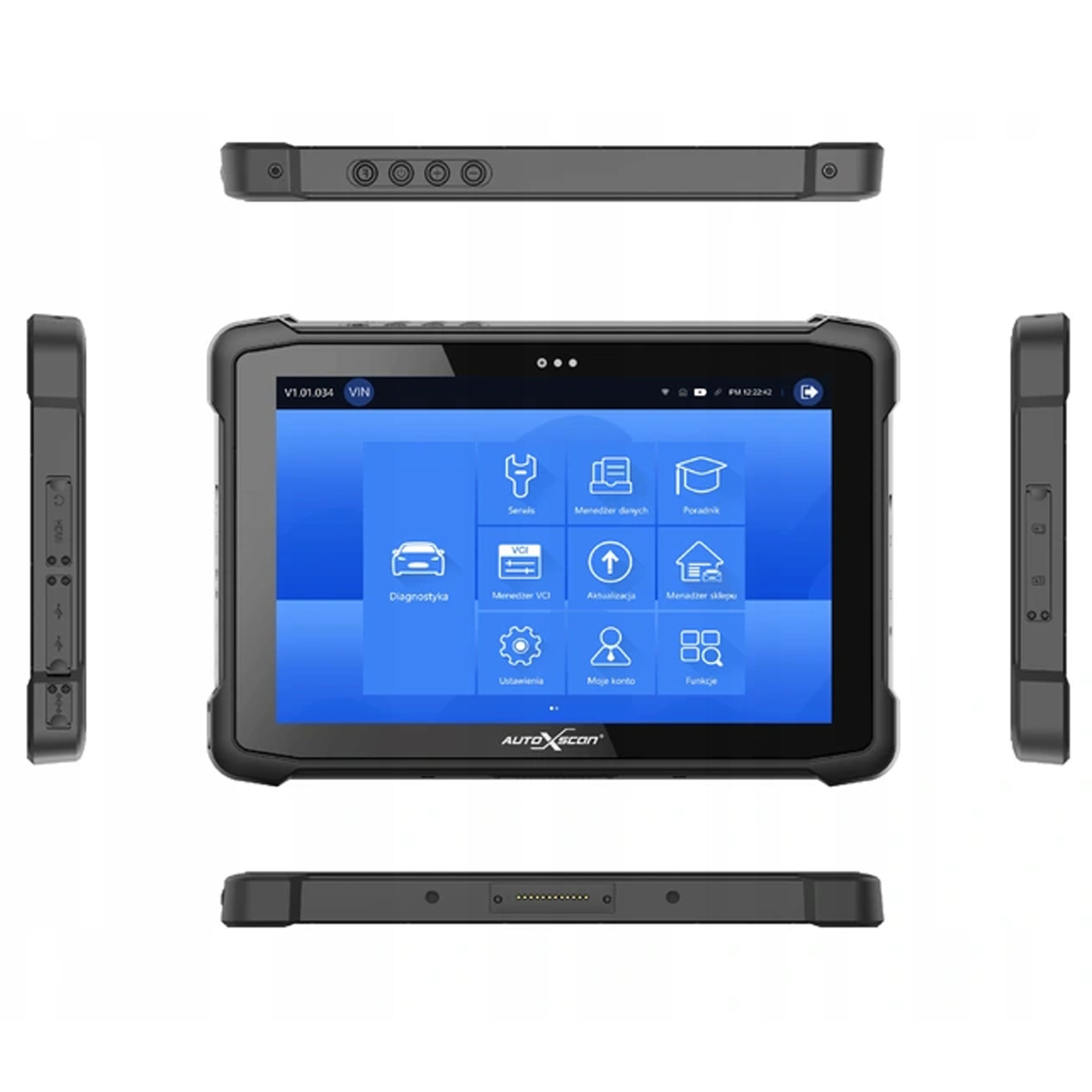 Тестер представляет собой автономное мастерское устройство, оснащенное 10-дюймовым сенсорным экраном, бронированное, водонепроницаемое, мастерское. Корпус прочного типа! Он работает под управлением операционной системы Windows 10 и позволяет проводить беспроводную диагностику через интерфейс Bluetooth. Диагностика полностью работает на польском языке