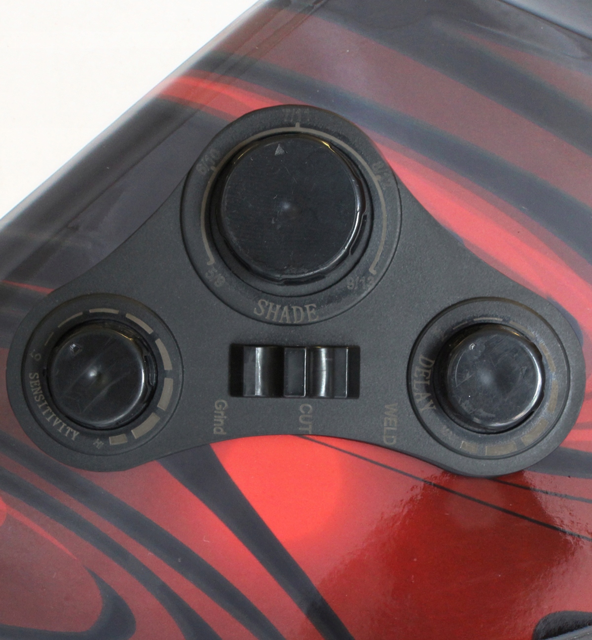 козырек имеет регулировку уровня затемнения, опцию TEST, выбор времени задержки и чувствительности, а также дополнительную настройку GRIND, предназначенную для шлифования и резки для плазменной резки.