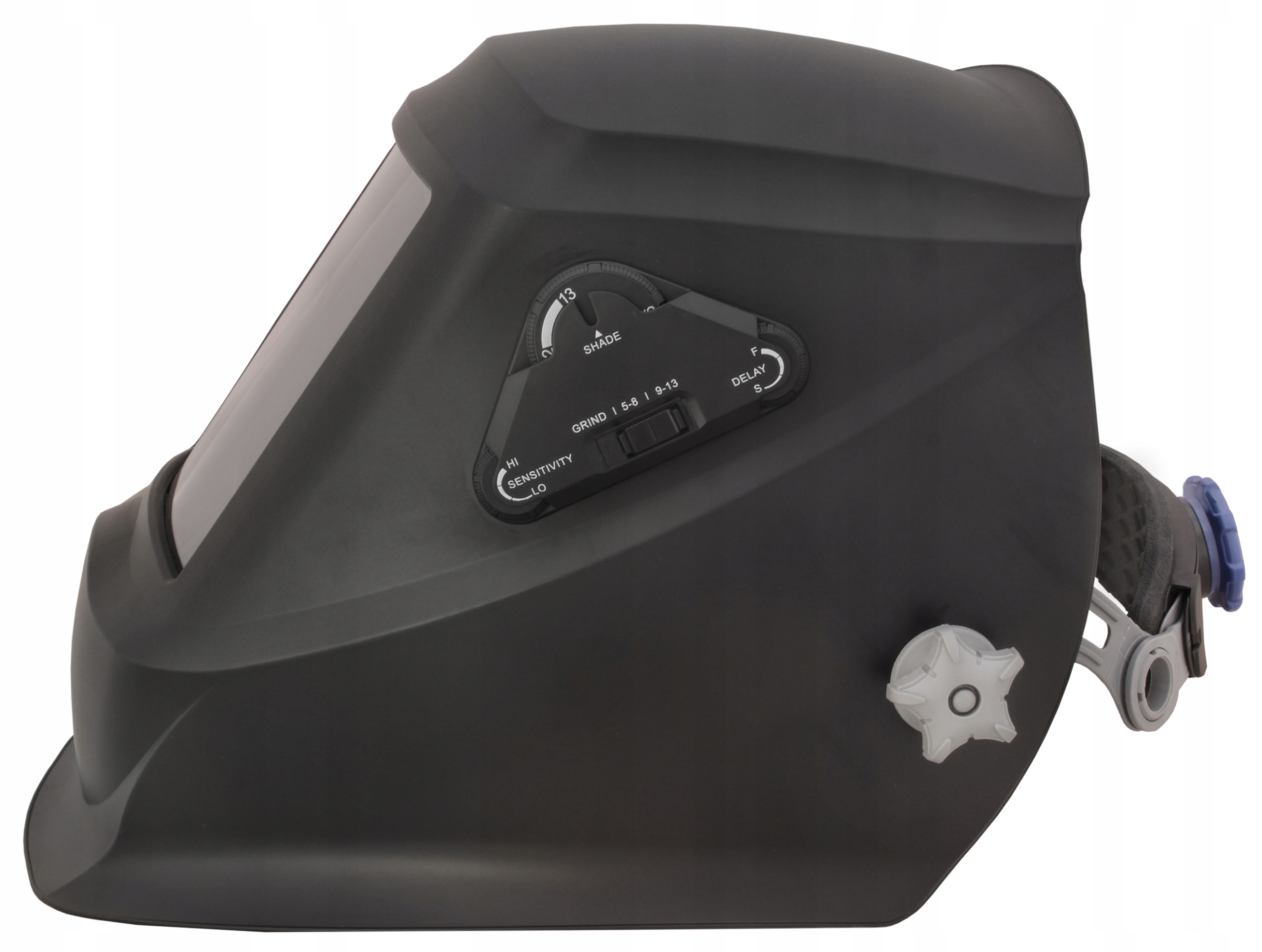 козырек имеет регулировку уровня затемнения, выбор времени задержки и чувствительности, а также дополнительную настройку GRIND, предназначенную для шлифования и резки для плазменной резки.