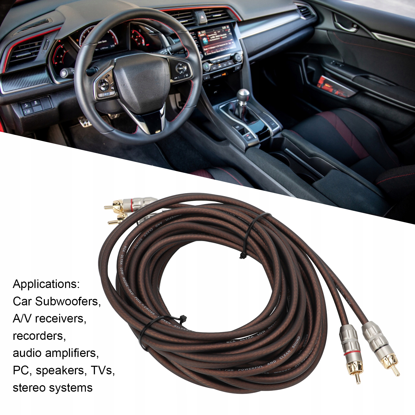 4. Длинный кабель 16,4 фута: аудиокабель автомобильного усилителя имеет длину 5 м / 16,4 фута, кабель достаточно длинный, чтобы удовлетворить ваши потребности.