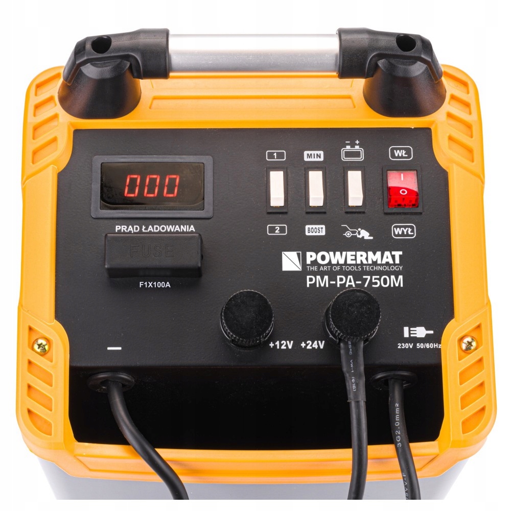 высококачественный автоматический и точный аккумуляторный выпрямитель с запуском POWERMAT PM-PA-750M. Отлично работает в профессиональных автосервисах и мастерских, а также в гаражах на заднем дворе. Устройство может заряжать током 12 В и 24 В.