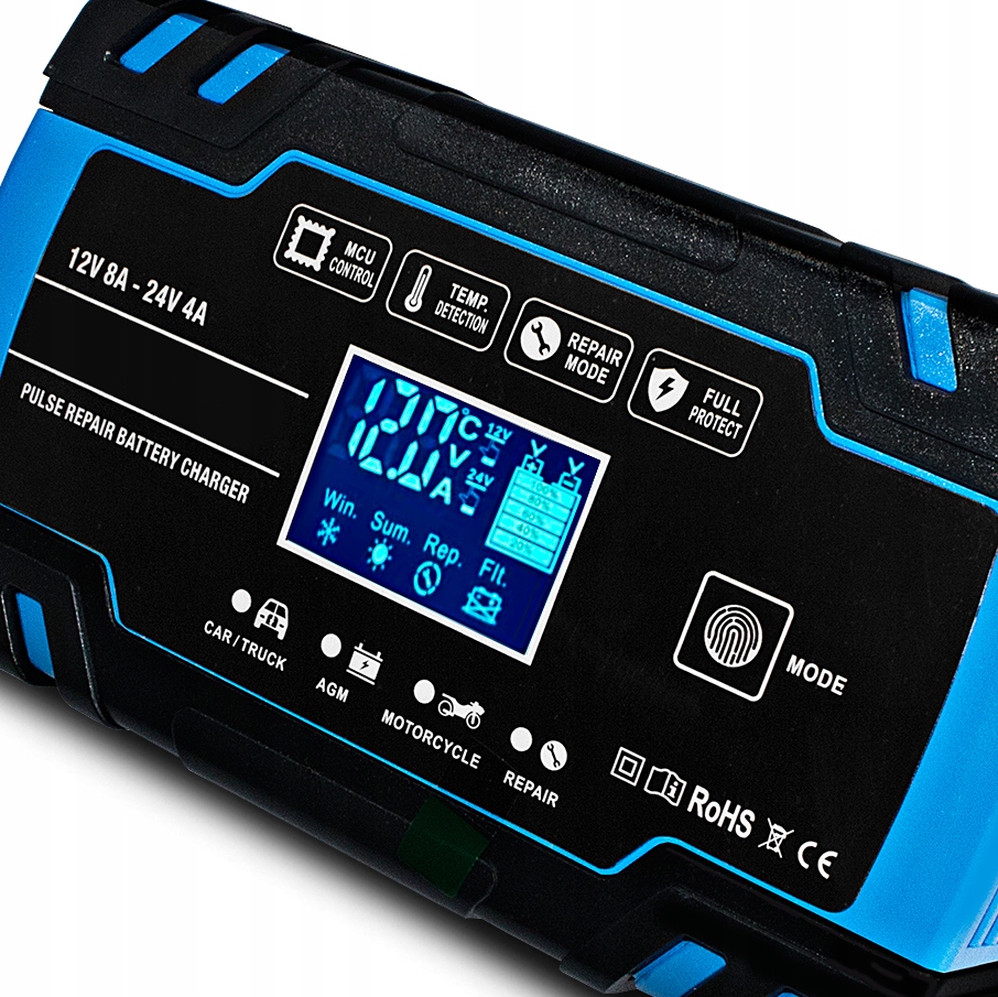 выпрямитель оснащен кнопкой для изменения режимов зарядки, с помощью которой одним касанием вы устанавливаете предпочтительный вариант: