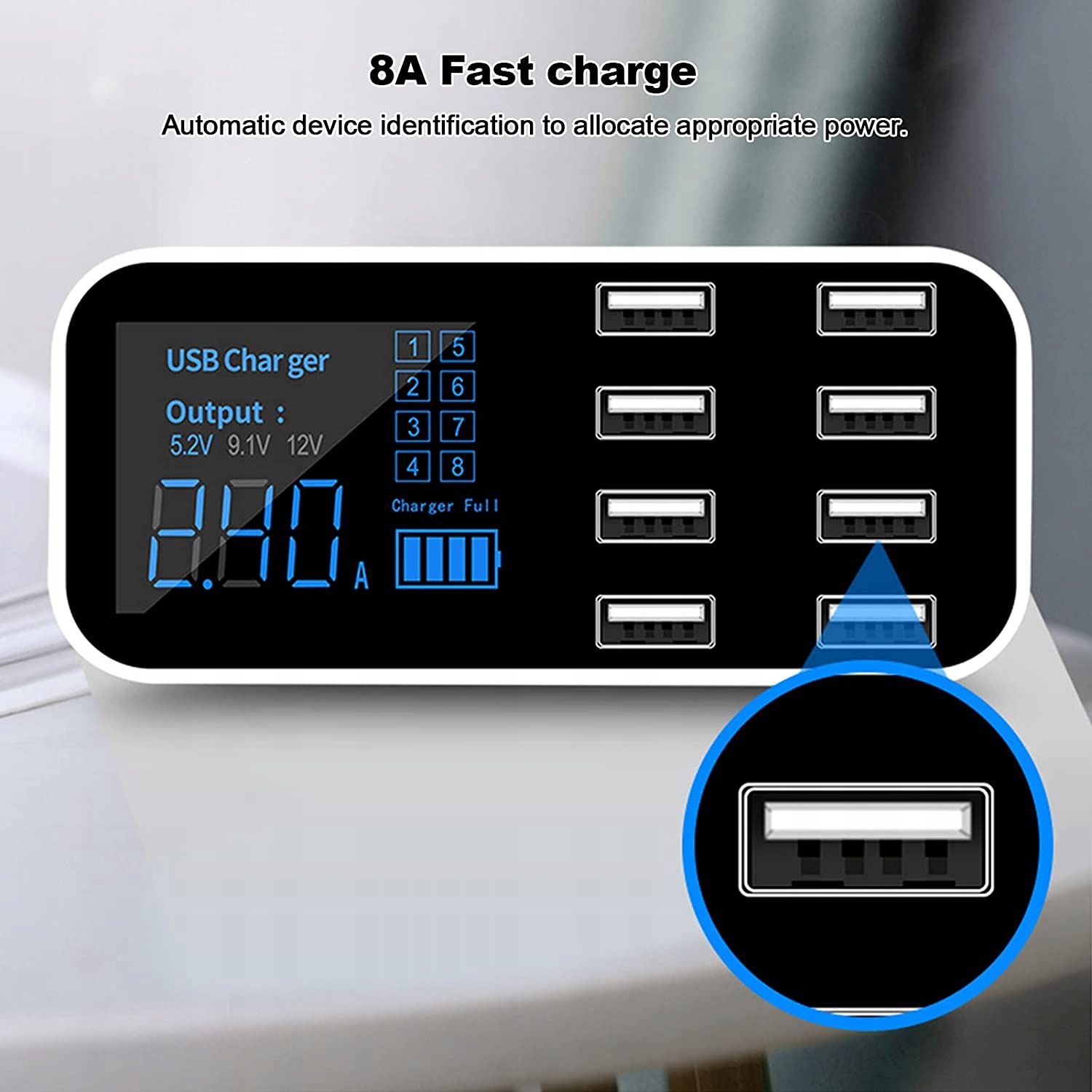 автомобильавтомобильдизайн продукта является инновационным компактным и ярким с индивидуальным легким и очень перенасыщенным. 8 выходных портов USB 8портовый разъем для автомобильного зарядного устройства moe выводит одновременно для удовлетворения потребностей одновременного подключения нескольких мобильных телефонов и автоматически идентифицирует prd в соответствии с устройством. Быстрое аддукторное устройство поддерживает быстрое аддукторное устройство 8А. в нем используется внутренний медный сердечник толщиной 1828awg и слои экрана, такие как провод заземления из алюминиевой фольги, чтобы аддуктор byo был быстрым и стабильным. С вентилятором LED adowarka оснащен may вентилятором и видимым цифровым вентилятором prdunapicia позволяет интуитивно видеть состояние установки Дикий что делает его более удобным в использовании. Широкая совместимость и безопасность это ультратонкое автомобильное зарядное устройство с функцией USB сильная и стабильная поддержка других цифровых продуктов USB. Функция защиты от короткого замыкания обеспечивает безопасную защиту цепи, которая широко используется в различных электронных устройствах.п>
