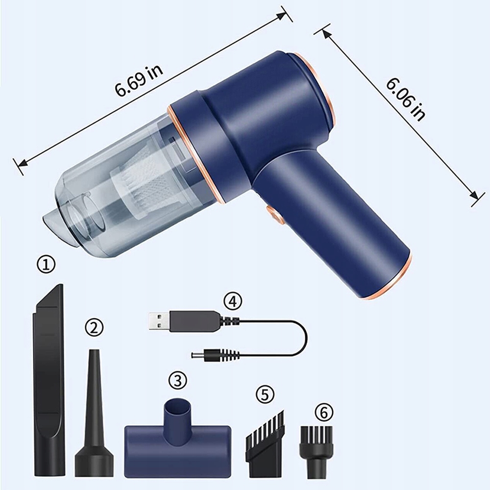 Портативный ручной пылесос с щеткой и щелевой насадкой, эти практичные щелевые насадки можно использовать для очистки труднодоступных мест. Портативный пылесос с высокой мощностью всасывания удаляет скрытую пыль с клавиатур, ноутбуков, компьютеров, принтеров, камер, сумок, офисных инструментов, автомобилей и домашней мебели. Подходит для чистки автомобиля, дома и офиса.