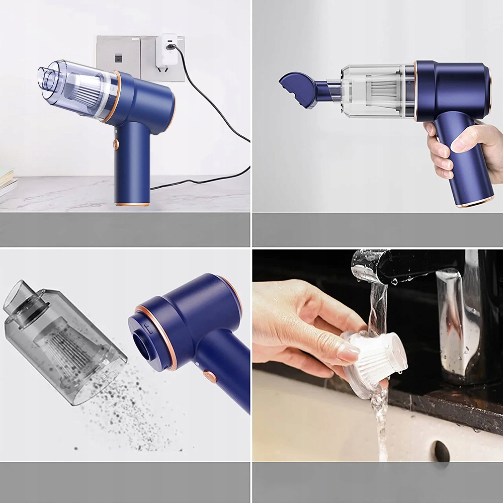 ручной автомобильный пылесос имеет сильное всасывание 8 кПа, которое подходит для очистки пыли в повседневной работе по дому. Выходная мощность супер мощный двигатель 120 Вт обеспечивает сильное всасывание до 8000 ПА, которое может быстро и легко удалить остатки пищи, частицы, перхоть домашних животных из вашего дома или автомобиля. Беспроводная мобильная работа влажного и сухого пылесоса более удобна.