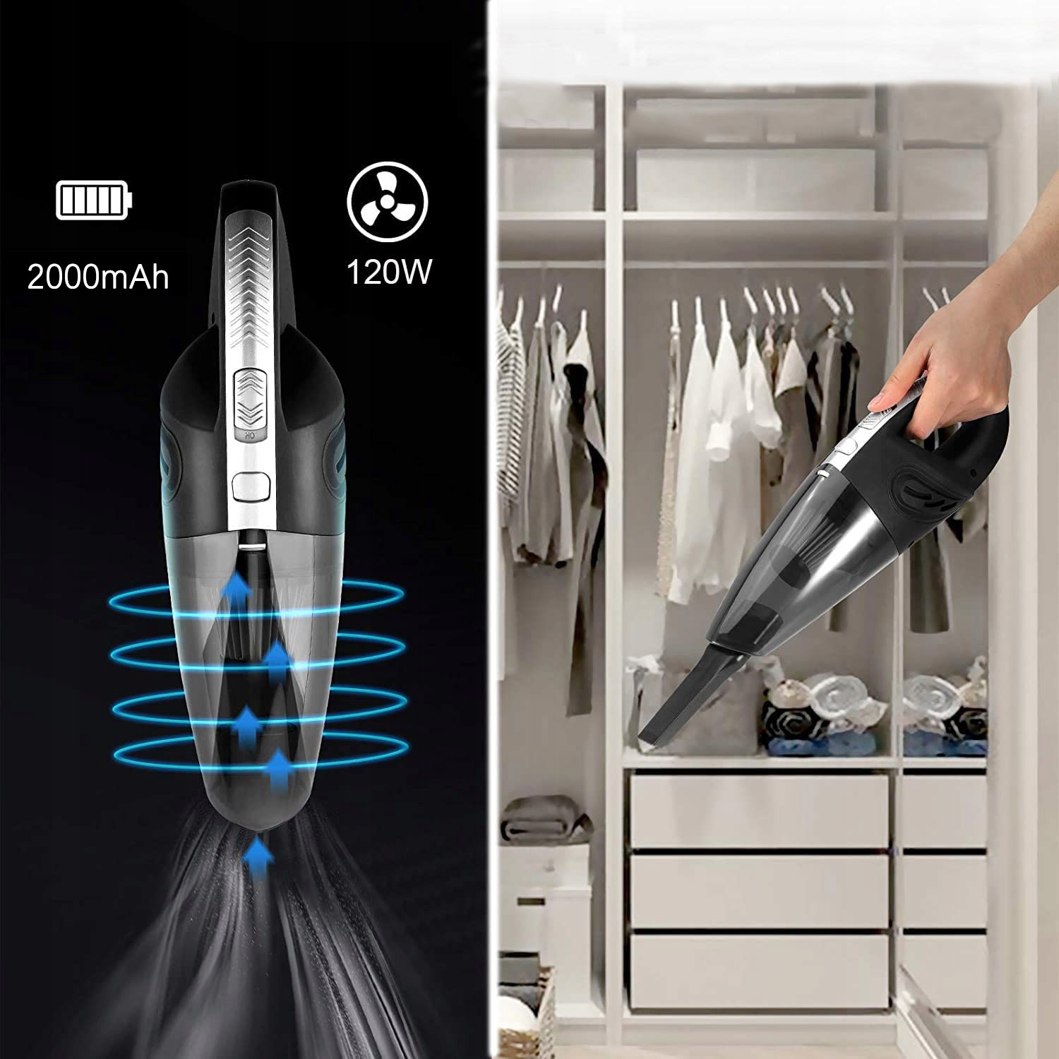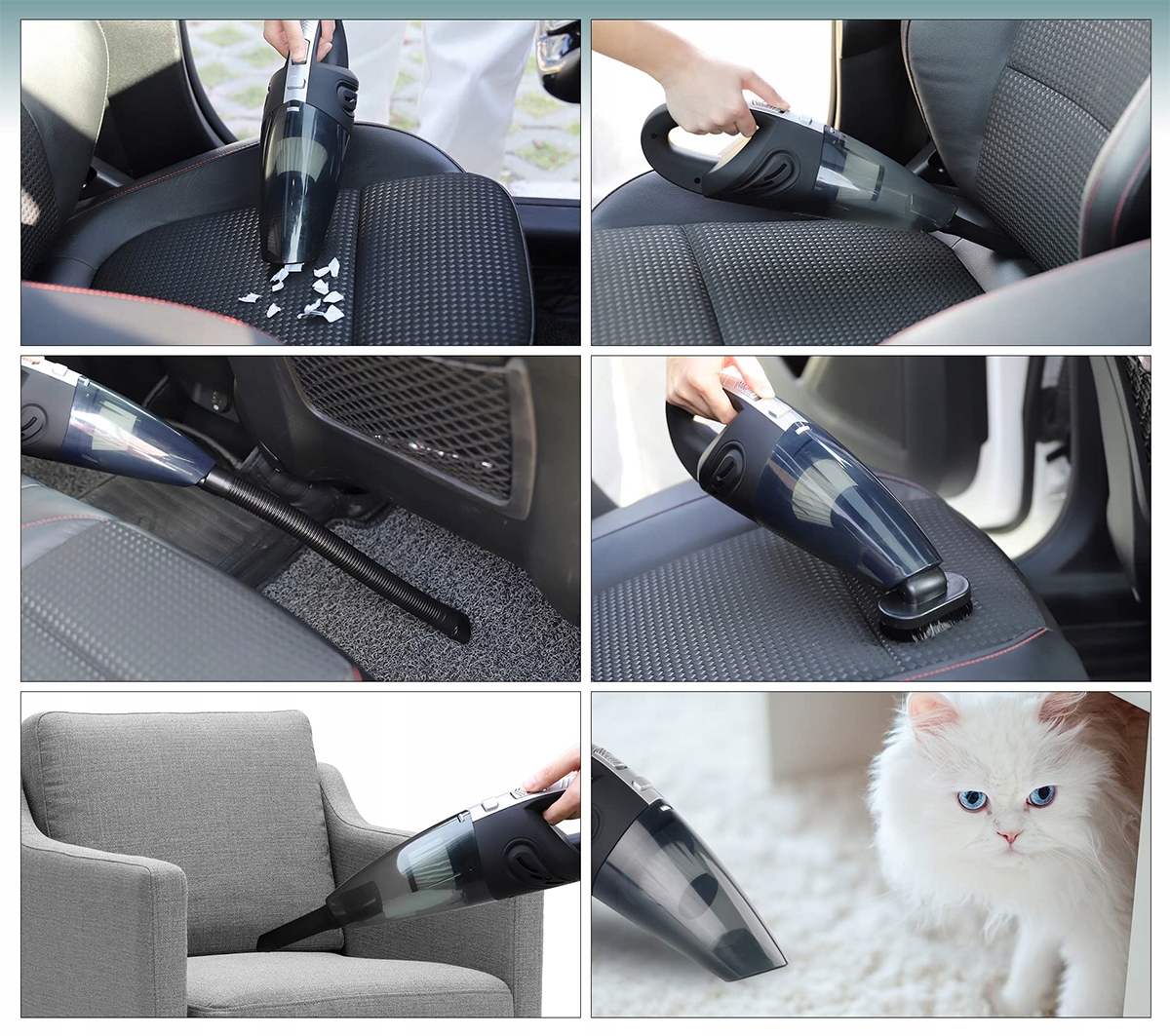 • Портативный ручной пылесос оснащен 5 функциональных аксессуаров , легкий ручной инструмент для пыли / волос / конфетти / крошек / песка / шерсти домашних животных на коврах, столах, диванах, клавиатурах, столешницах, автомобильных креслах и т. д.