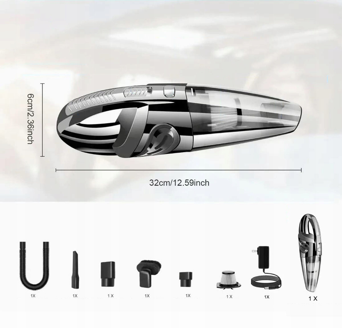 • ручной автомобильный пылесос имеет улучшенный HEPA-фильтр с высококачественным нейлоновым фильтром.