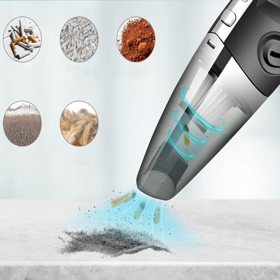 • новый мощный двигатель обеспечивает мощность всасывания 6000 Па, а аккумуляторный автомобильный пылесос без проблем удаляет пыль, крошки, кошачью шерсть, шерсть домашних животных, а также пролитое молоко и жидкости.