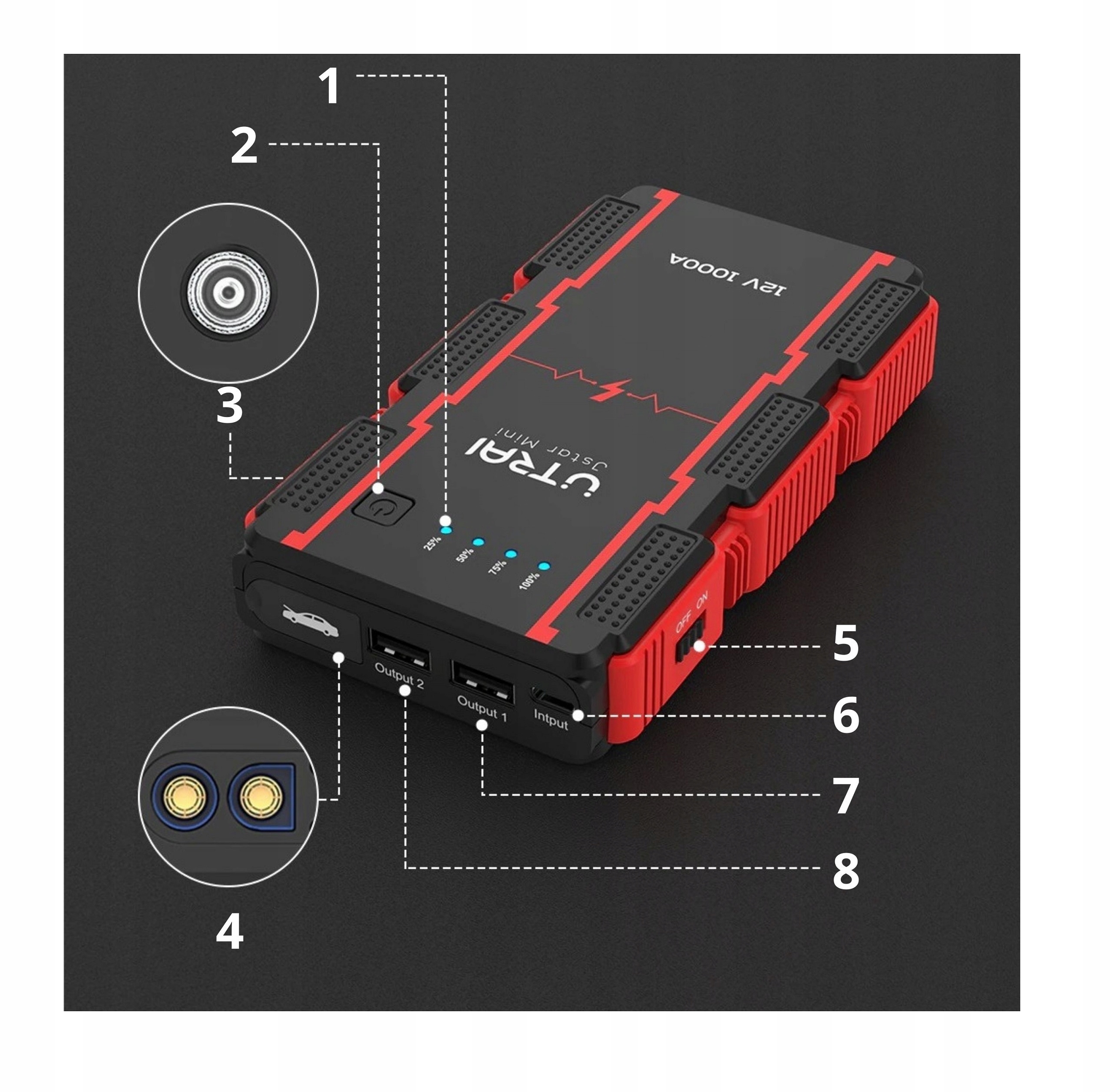 Jump Starter имеет восемь интеллектуальных функций, которые обеспечивают безопасность пользователей и защищают устройство от повреждений.