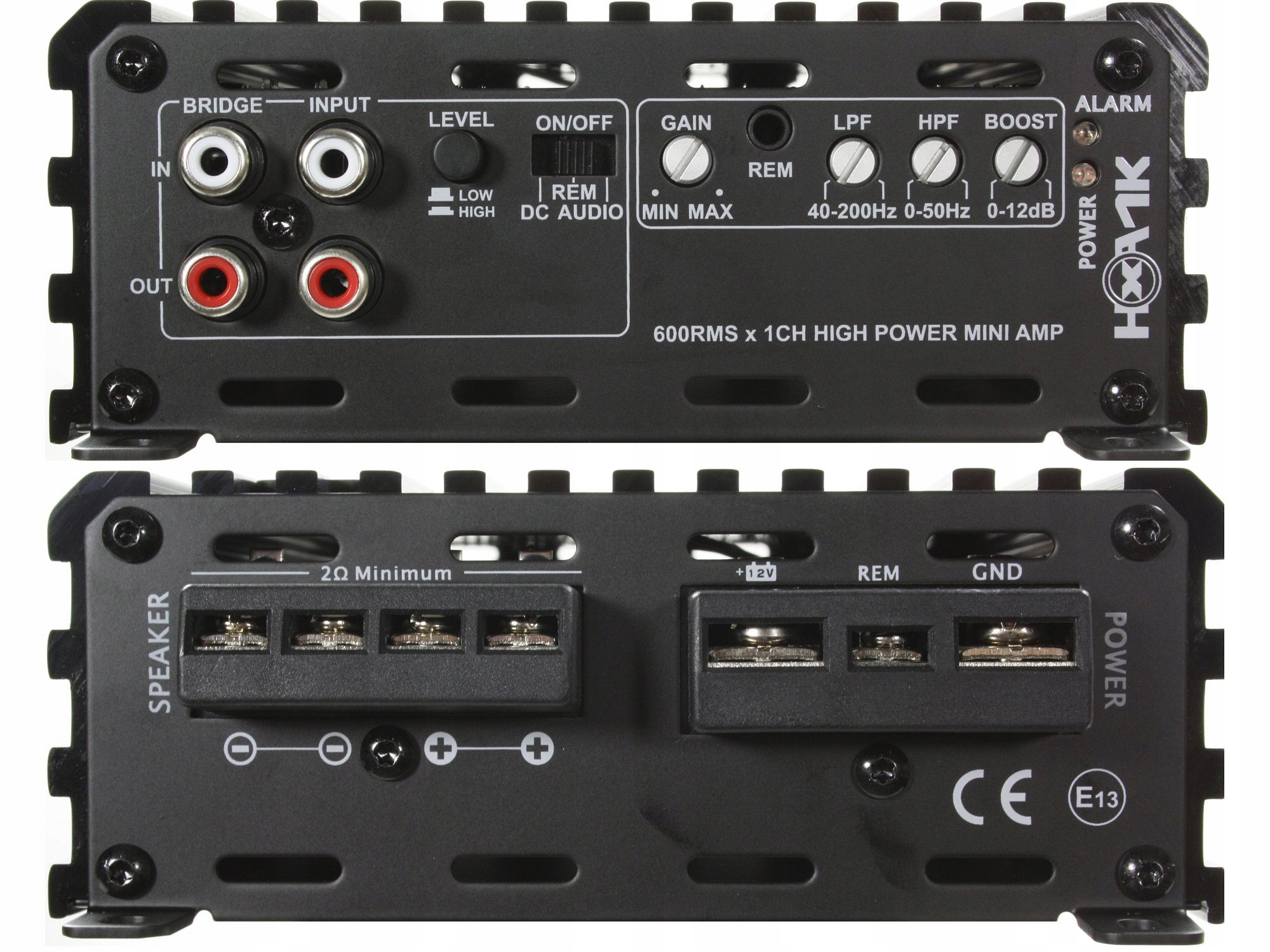 цифровой 1-канальный усилитель с очень высокой эффективностью и небольшими размерами, построенный на основе двухсторонней печатной платы, изготовленной по технологии поверхностного монтажа SMD. Усилитель оснащен системой подавления шума и помех, а также многодорожечной системой защиты от перегрузки, короткого замыкания на выходе динамика, перегрева и слишком низкого или слишком высокого напряжения питания. В стандартную комплектацию также входят плавно регулируемые фильтры LP и HP с возможностью работы в режиме BP Subsonic (Band Pass), эквалайзер усиления баса "Bass Boost", система "Auto Turn ON/OFF", управляющая включением и выключением усилителя, а также входы "High / Low Input" для аудиосигнала уровня динамика и уровня RCA (общие входы сигнала для режима "High / Low" через разъемы RCA). Все 1-канальные усилители Excursion серии HXA имеют возможность подключения, то есть совместную работу двух одинаковых моделей в компоновке мостового соединения (одна в качестве управляющего ведущего, другая в качестве ведомого). Усилитель HXA-1K может стабильно работать с нагрузкой с минимальным импедансом 2? при стандартной конфигурации соединения или 4? в системе двух одинаковых усилителей, работающих совместно в режиме моста(мост). Эта модель также может быть оснащена дополнительным дистанционным регулятором громкости сабвуфера Excursion HXA-RC.п>