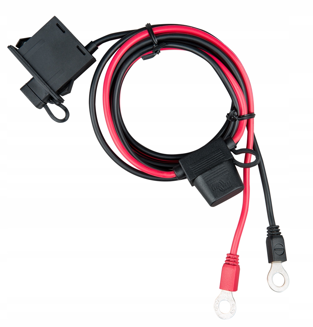 проушины фиксируются на клеммах аккумулятора, а снабженная защитным колпачком вилка размещается в максимально удобном месте.