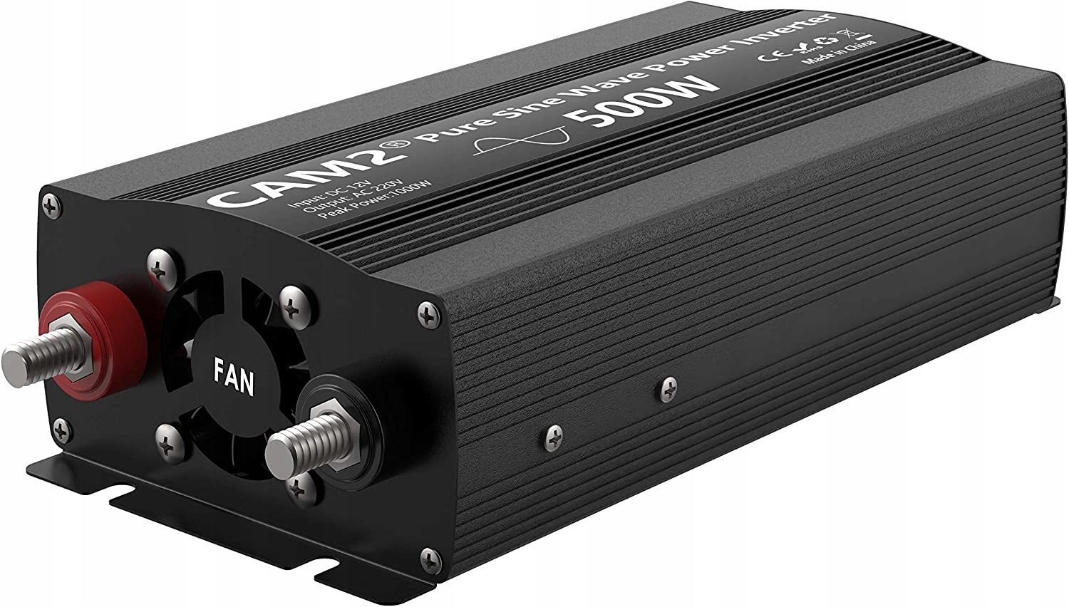 - чистый синусоидальный инвертор: преобразует постоянный ток 12 В в бытовой 220 В переменного тока с непрерывной мощностью 500 Вт (пиковая мощность 1000 Вт). Он оснащен 1 розеткой переменного тока и 2 предохранителями для замены.