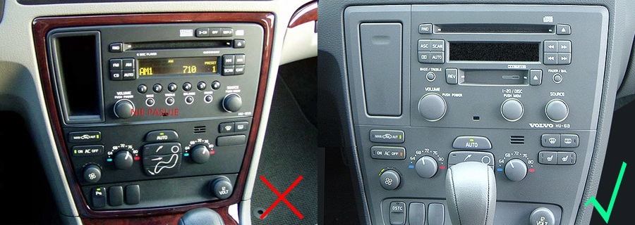 Volvo S70/V70 (S/J/JV) 2000 - 2004 Volvo S60 (R/H) 2000 - 2004 Volvo XC70 (B) 2000 - 2004 заменяет заводские радиоприемники с формой, как показано на рисунке ниже справа:
