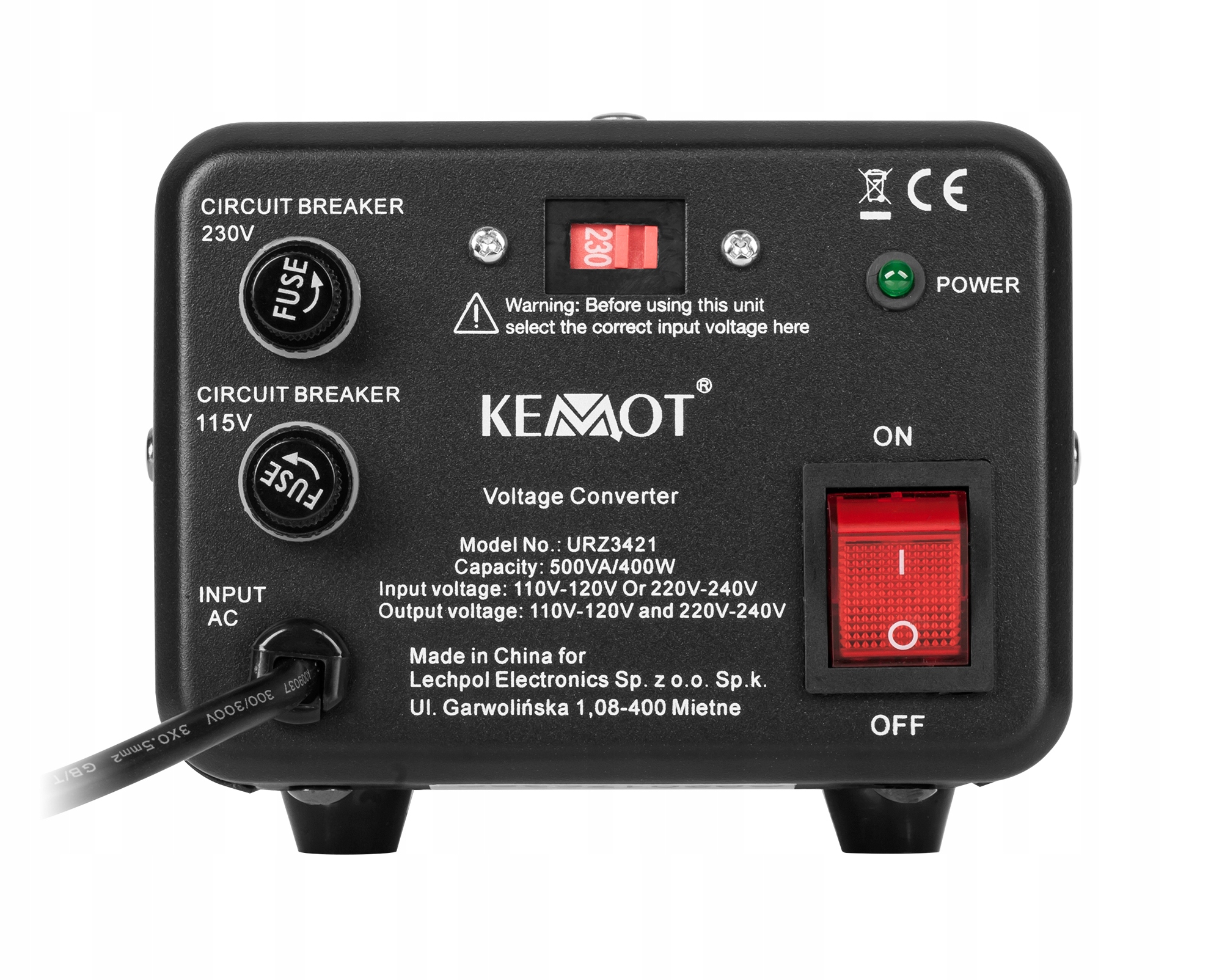 - 2 режима работы: 230 В > 115 в / 115 В > 230 в