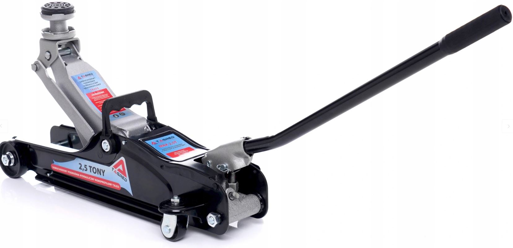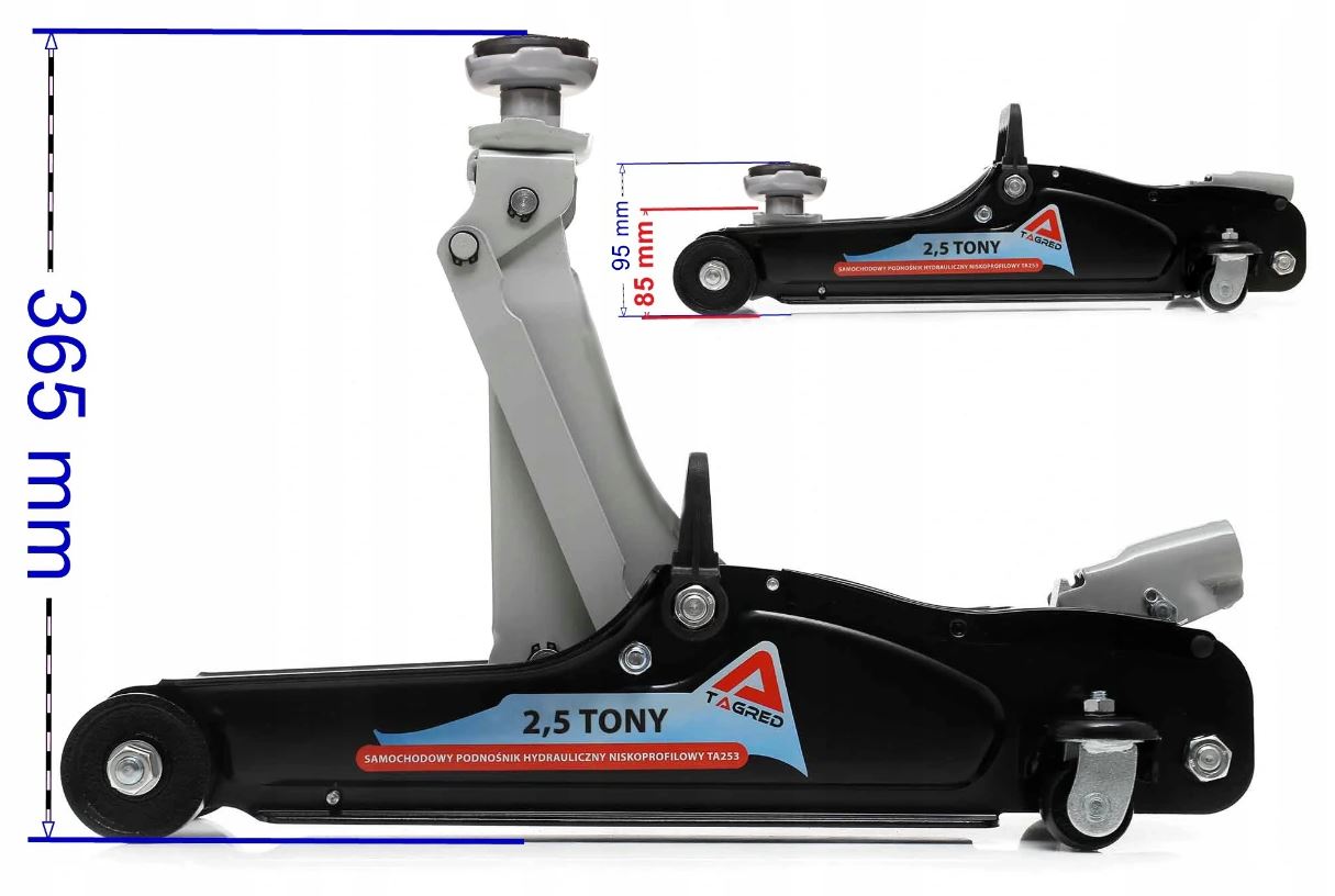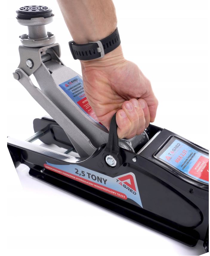 необходим в домашнем гараже, а также в автосервисе, шиномонтаже или станции технического обслуживания транспортных средств - низкопрофильный подъемник TAGRED грузоподъемностью 2,5 тонны изготовлен из лучших рулонных стальных листов, которые объединяются в специальные профили, повышающие жесткость конструкции. Очень небольшая начальная высота делает домкрат TAGRED идеальным для работы с любым автомобилем, включая автомобили с пониженной подвеской - он даже проскользнет под легковой автомобиль, настроенный на понижение подвески до 85 мм!