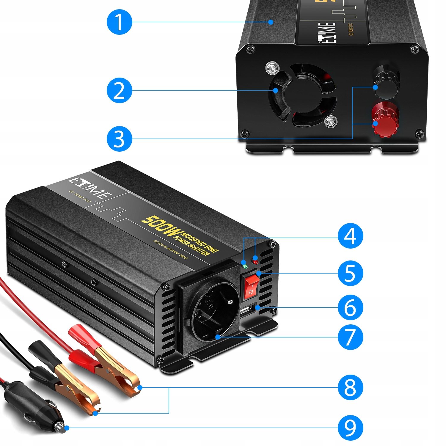 инвертор ETiME 12V / 230V 5005w / 1000W-необходим для путешествий, отдыха, на открытом воздухе, аварийных комплектов и многого другого.