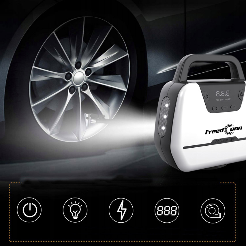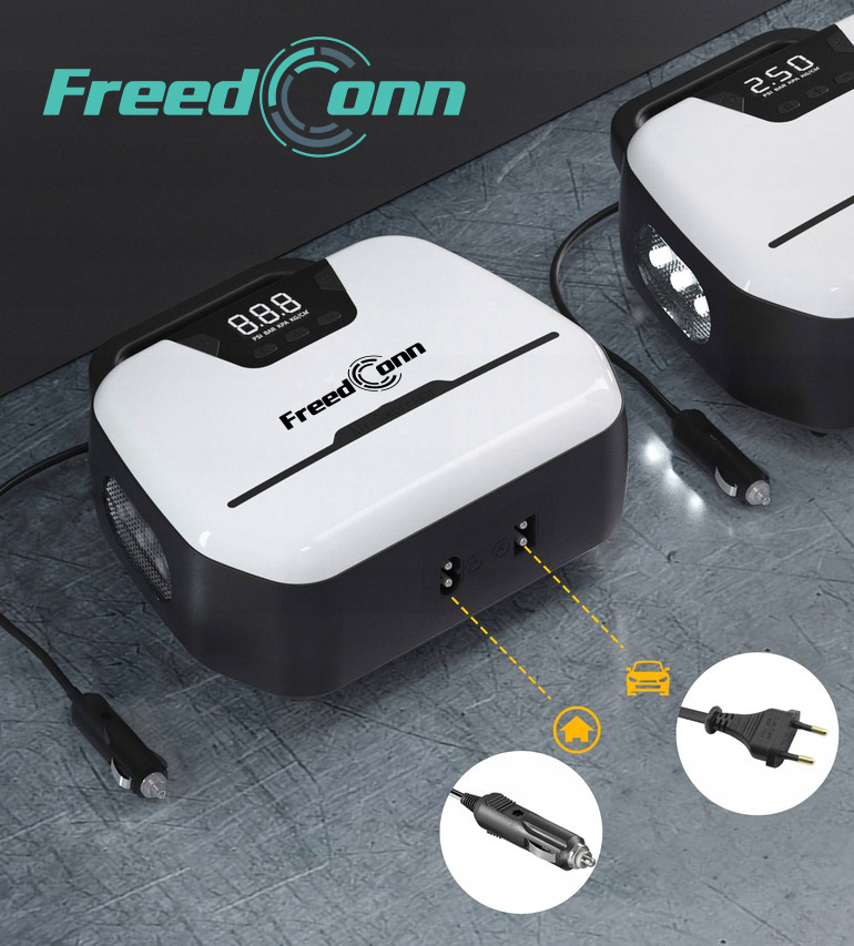 компрессор FREEDCONN 1866 12/230V с фонариком и ЖК-дисплеем + аксессуары