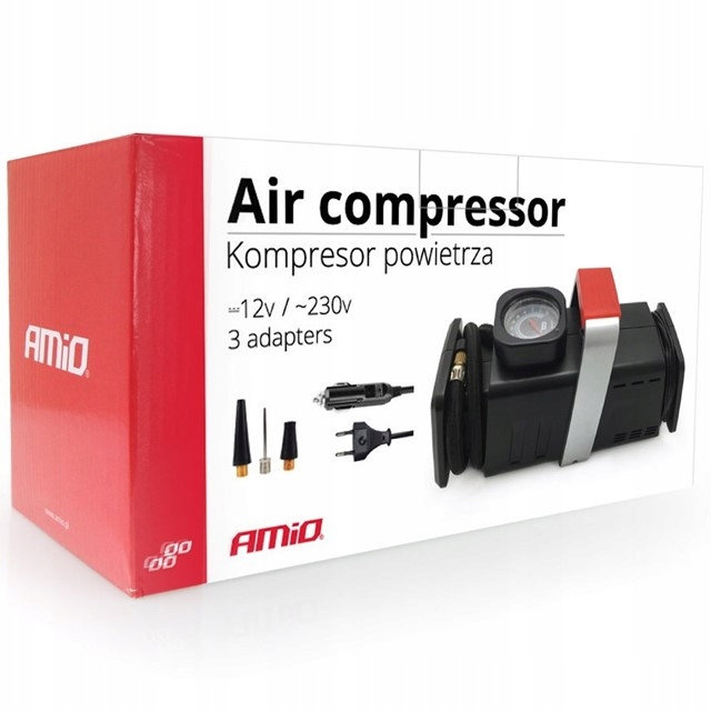 Высококачественный автомобильный компрессор, работающий от розетки прикуривателя 12 В и сетевой розетки 230 В. Идеально подходит для накачивания автомобильных и велосипедных колес, а также матрасов и мячей.