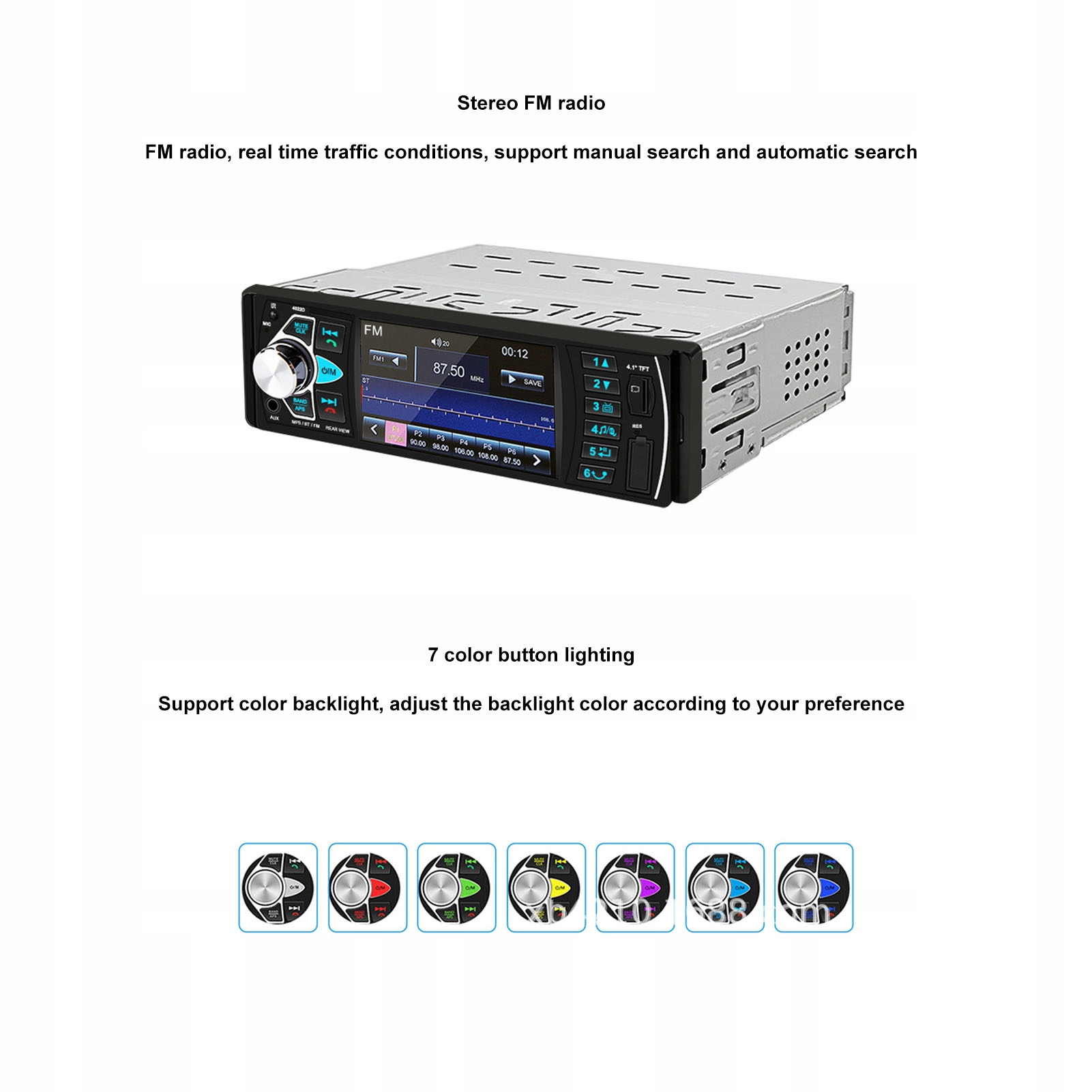 4. FM-стереорадио. Этот автомобильный MP5-плеер оснащен FM-стереорадио, которое обеспечивает автоматический или ручной поиск и предоставляет информацию о дорожной обстановке в режиме реального времени.