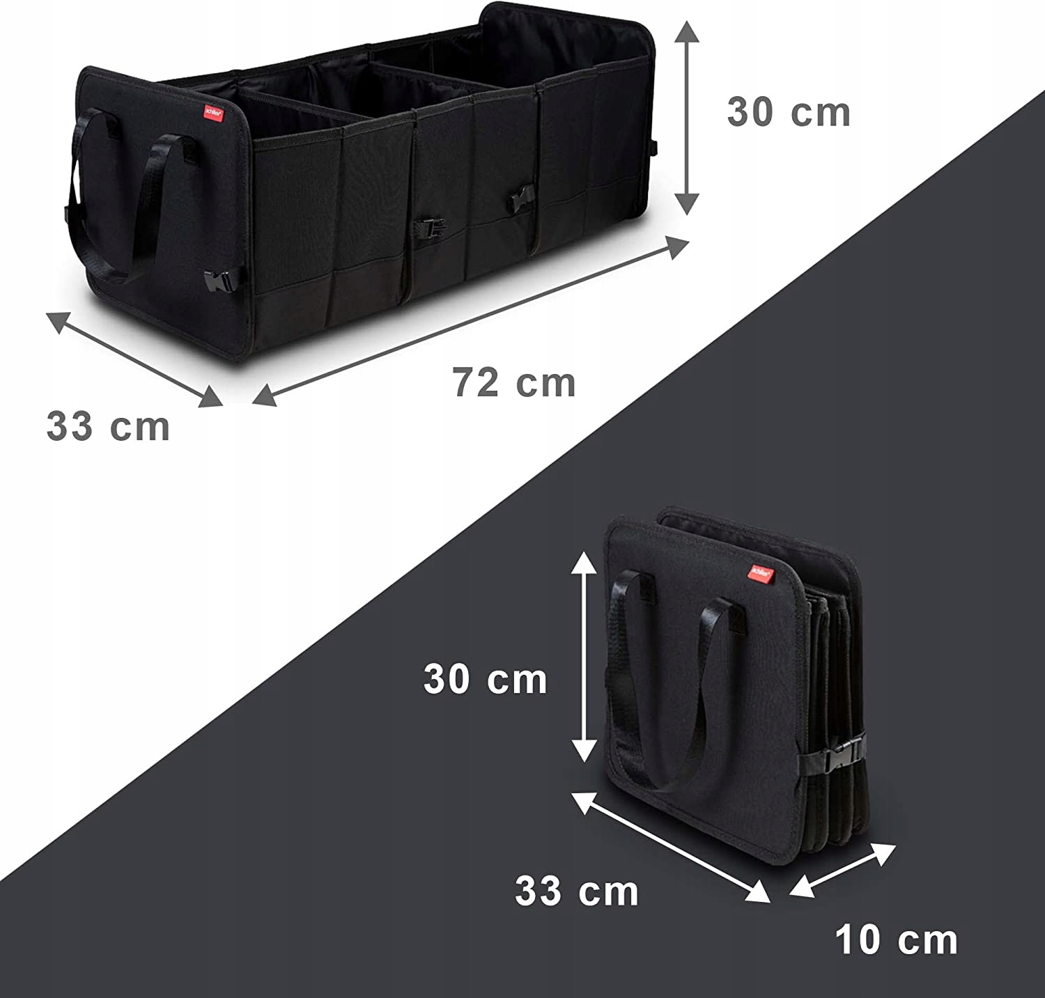 складной и компактный : автомобильная сумка обеспечивает большую емкость 71 литра (74 x 33 x 29 см). Тем не менее, его можно сложить до 10 см, если он не нужен. Это делает его складным, ультракомпактным автомобильным органайзером