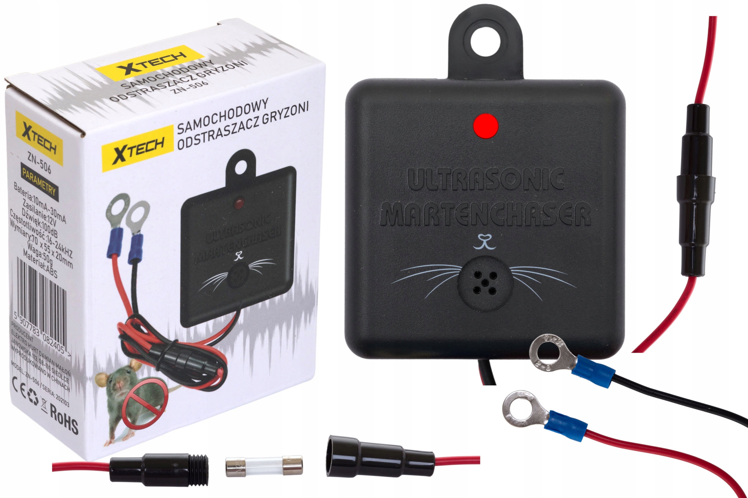 быстрая установкаавтомобильный отпугиватель kun X-tech просто закрепите под аккумулятором, который эффективно питает устройство.