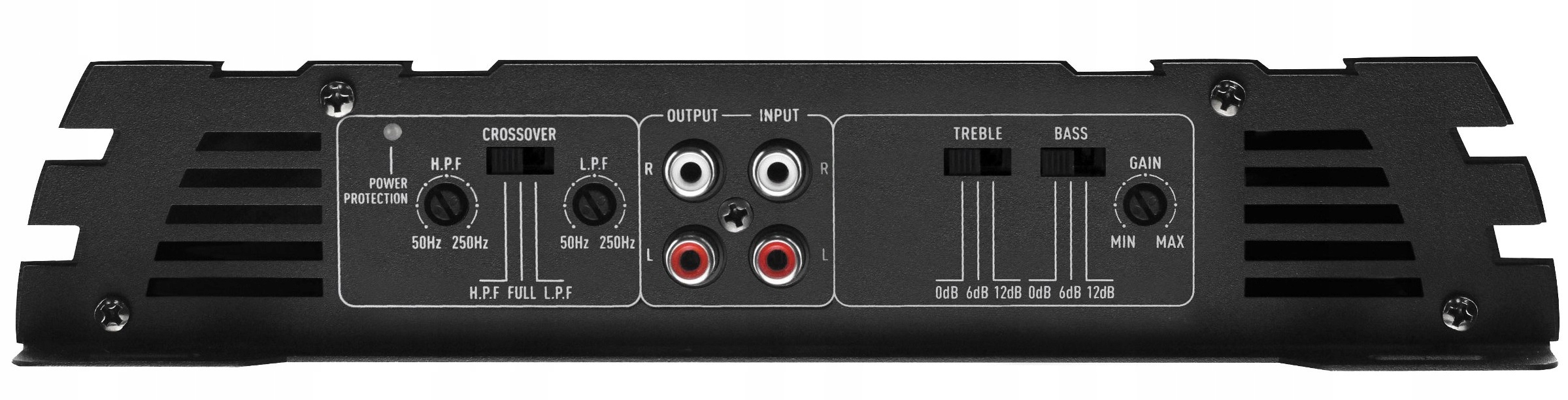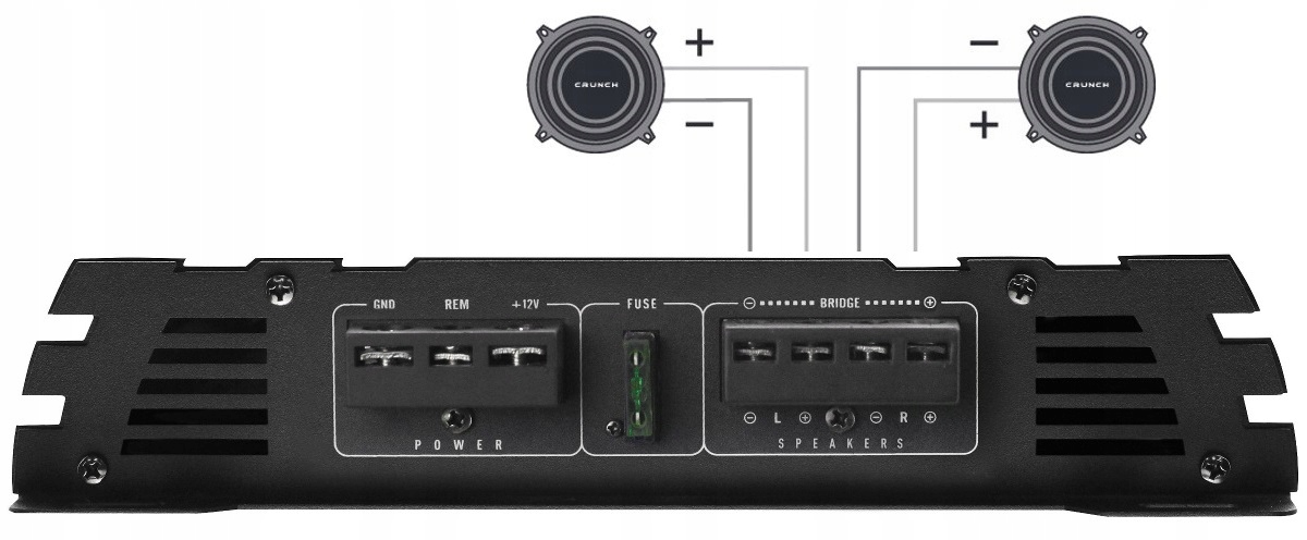усилитель имеет возможность мостового соединения, то есть объединения мощности левого и правого каналов для питания одного низкочастотного динамика.встроенный низкочастотный кроссовер позволяет правильно настроить частотную характеристику так, чтобы сабвуфер получал звук с соответствующей полосой пропускания.