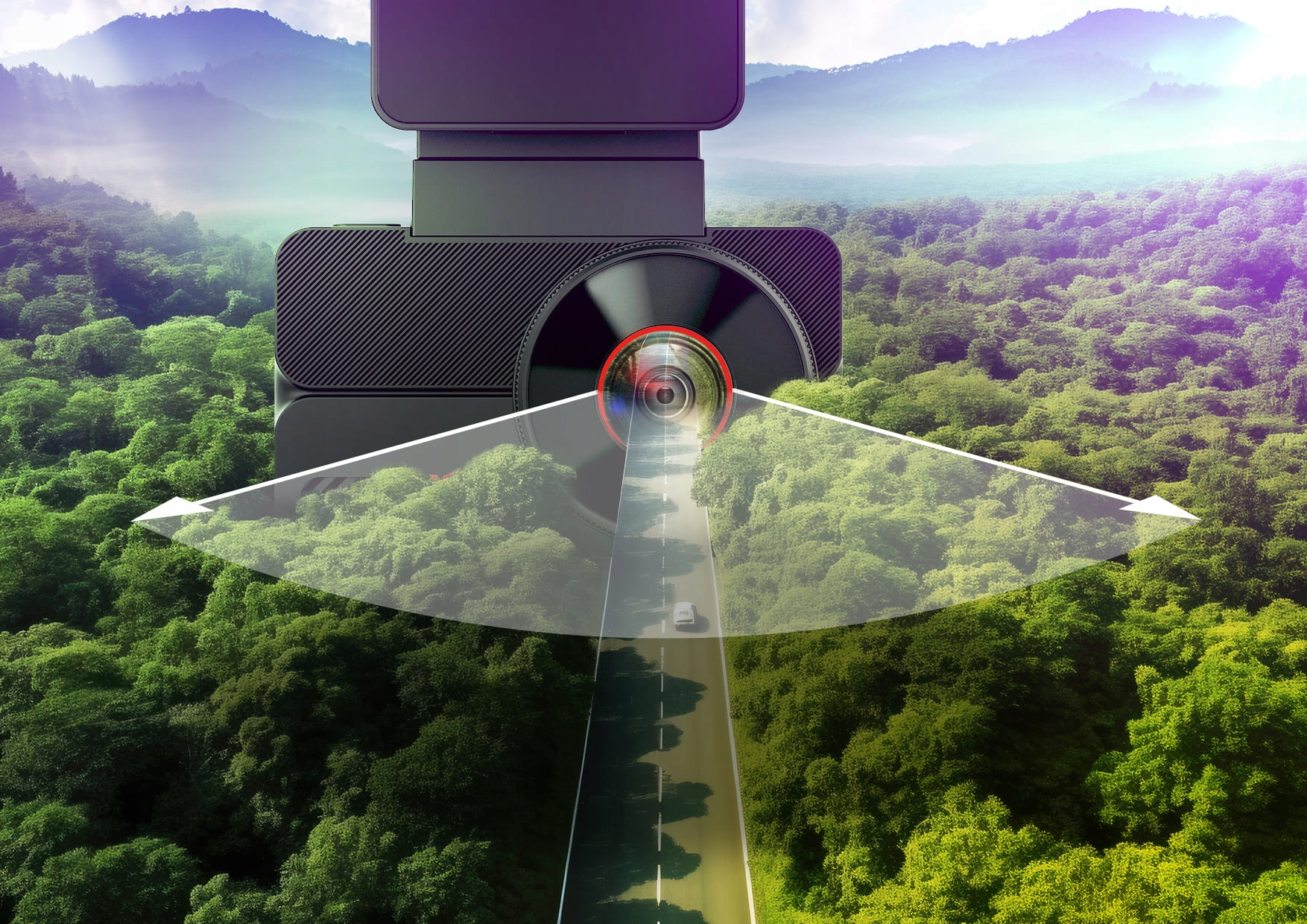 Объектив, имеющий широкий угол обзора, собирает изображение с двух полос дороги и обочины. Устранение мертвых зон из записи означает, что изображение полностью отражает ситуацию, произошедшую на дороге.