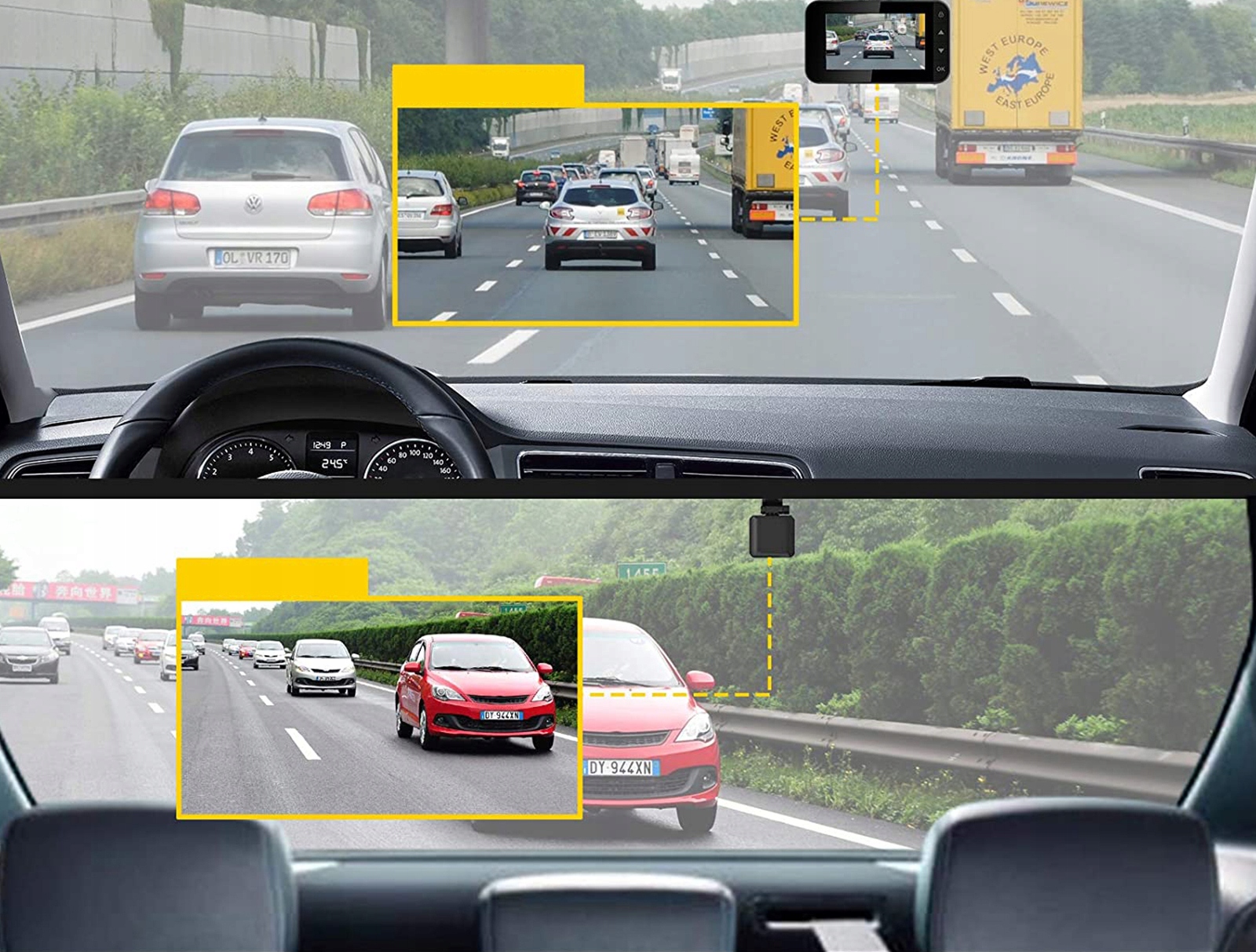 ♣ Панель управления позволяет захватывать подробные изображения, включая уличные знаки и номерные знаки. Кроме того, приборная панель имеет более широкое поле обзора и меньше слепых зон благодаря широкоугольной камере.