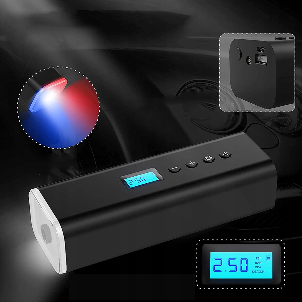обновите портативный воздушный компрессор, который имеет мини-размер, легкий вес и оснащен легко читаемым ЖК-дисплеем dipay с подсветкой.