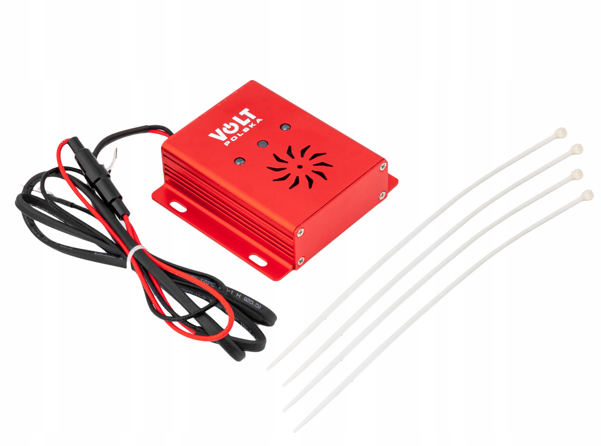 В комплект входят пластиковые ленты и кабели для подключения аккумулятора.