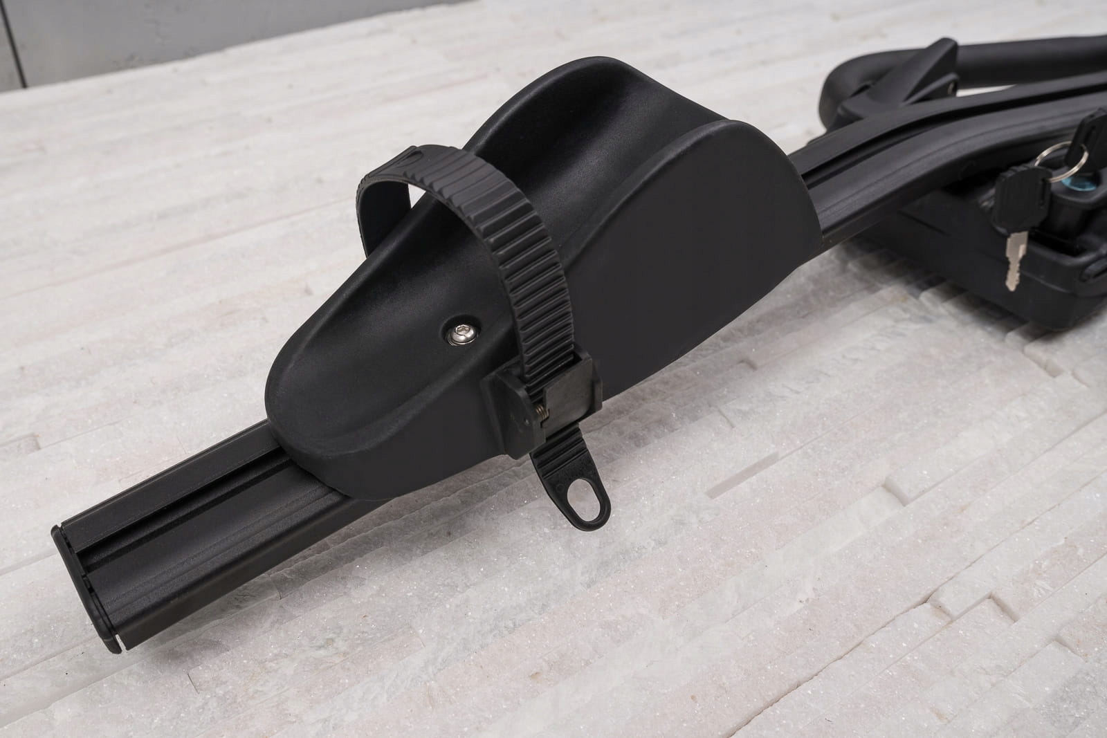 багажник оснащен простым в использовании, не требующим использования инструментов креплением, позволяющим перемещать багажник с одной стороны крыши на другую, так что вы можете легко отрегулировать положение конструкции в соответствии с расстоянием между рейлингами. п>