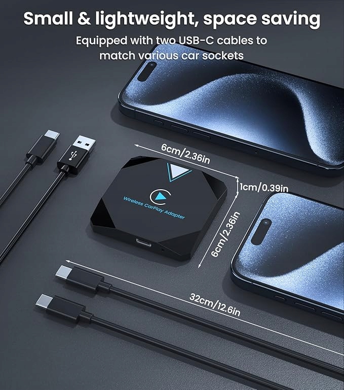 Беспроводной адаптер CarPlay: легко преобразуйте проводной Apple CarPlay в беспроводной. Попрощайтесь с необходимостью подключать iPhone с помощью кабелей каждый раз, когда садитесь в машину. Двигайтесь безопасно, имея свободный доступ к мультимедийному дисплею.