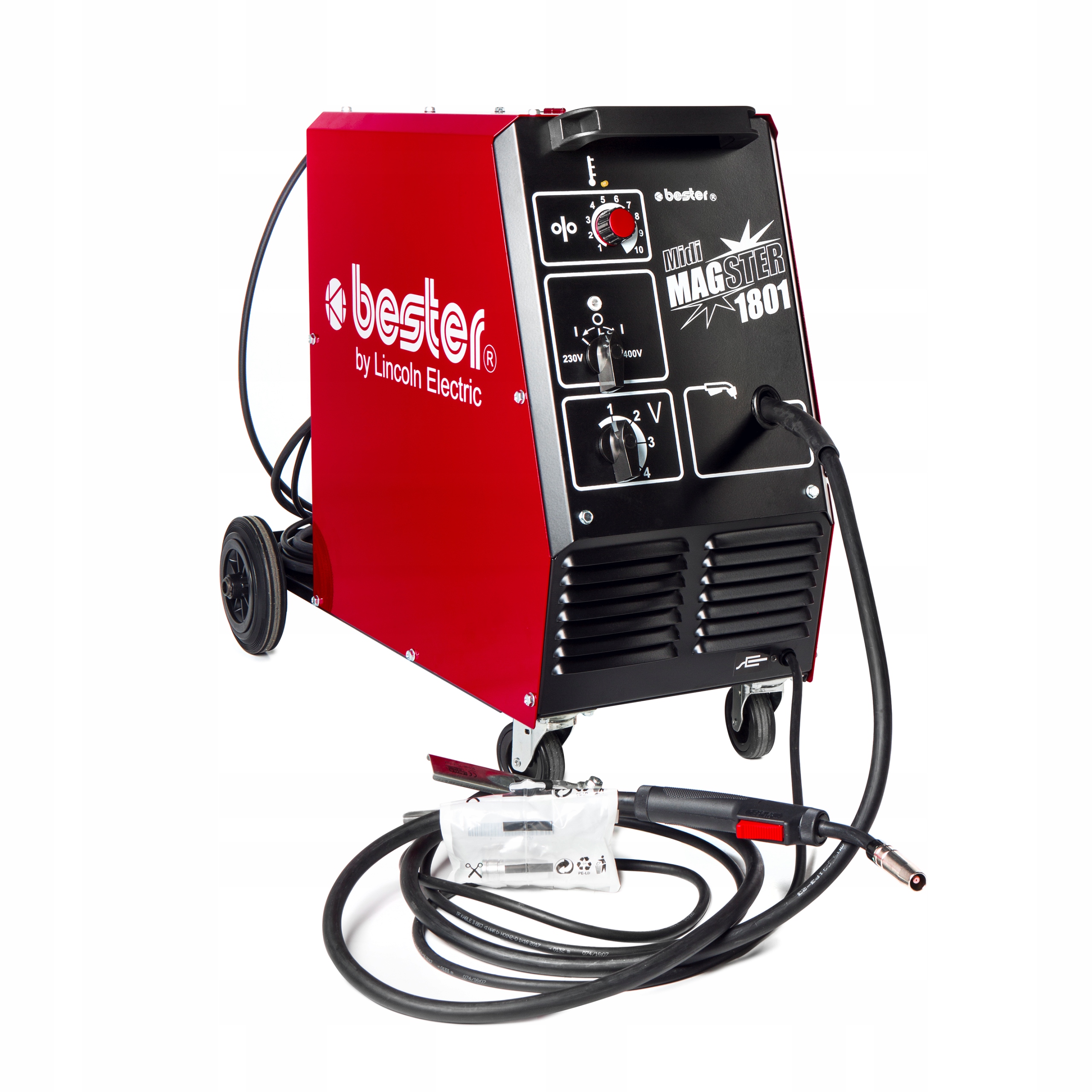 - сварочный аппарат Bester Midimagster 1801 (с сварочным патроном, массовым патроном, силовыми проводами подключается на 400 В и штекером на 230 В)