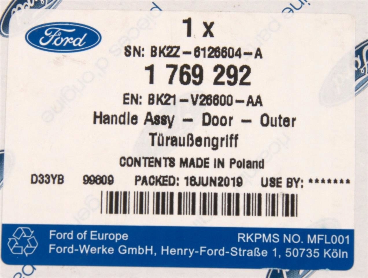 | Оригинальный номер детали | 1769292, |