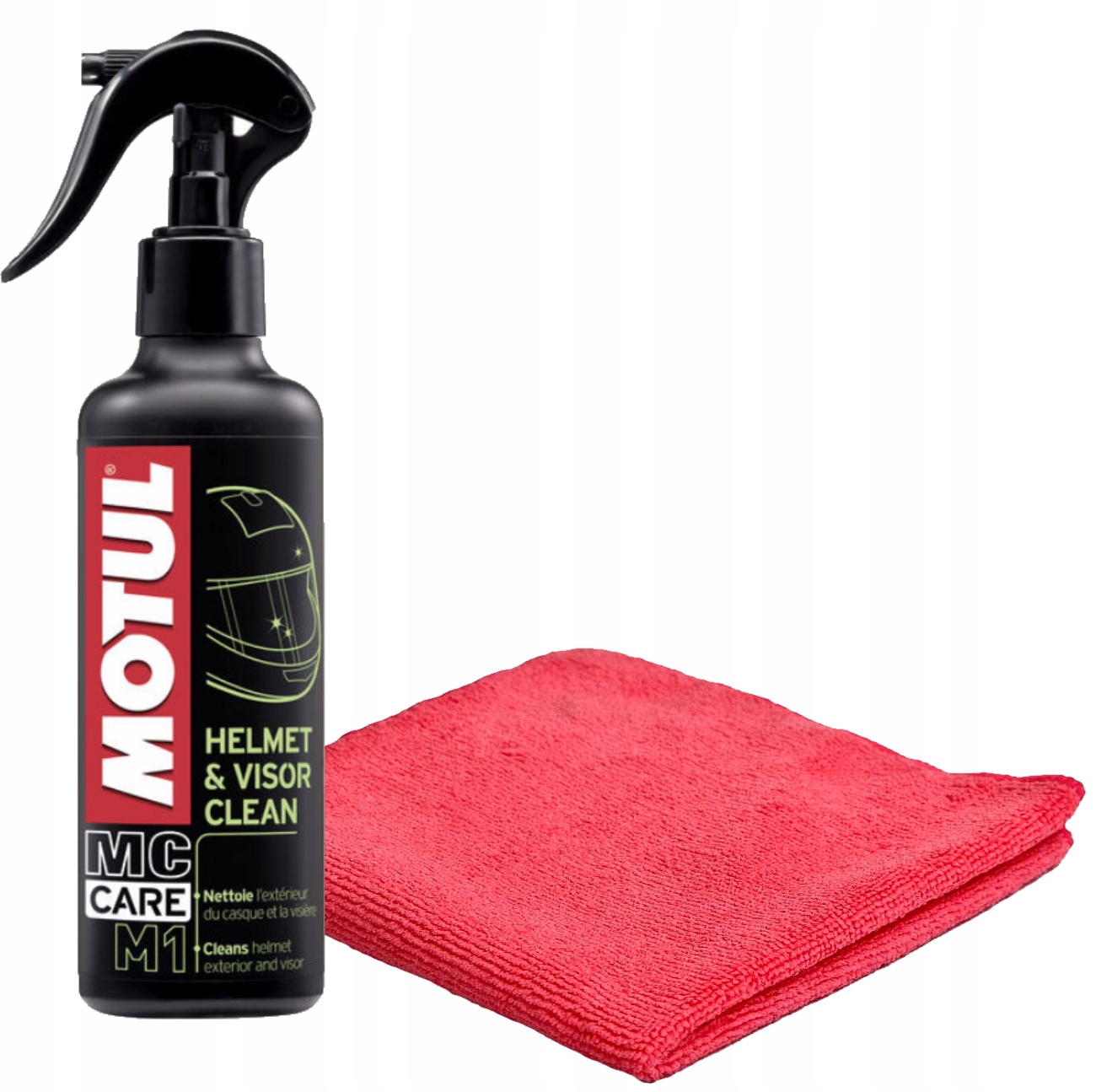 Motul M1 нейтральное и неагрессивное средство для чистки внешней части шлема, очков/очков и легких загрязнений, не оставляет пятен.