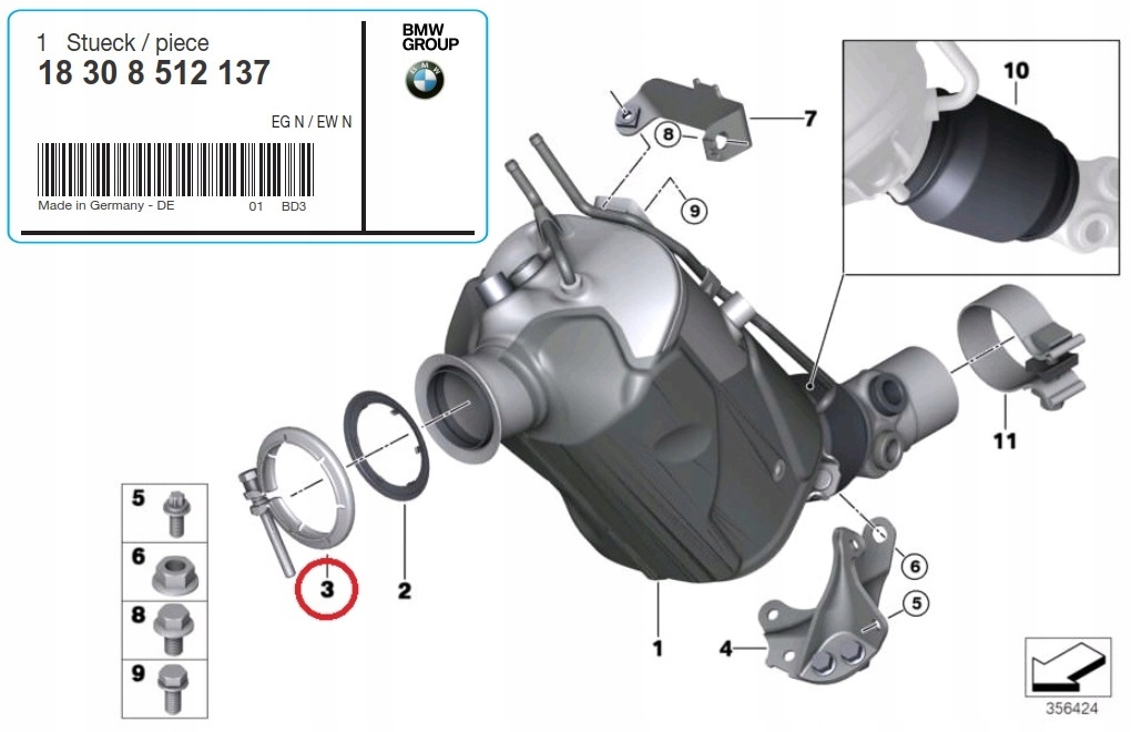 | Оригинальный номер детали | BMW 18308512137, |