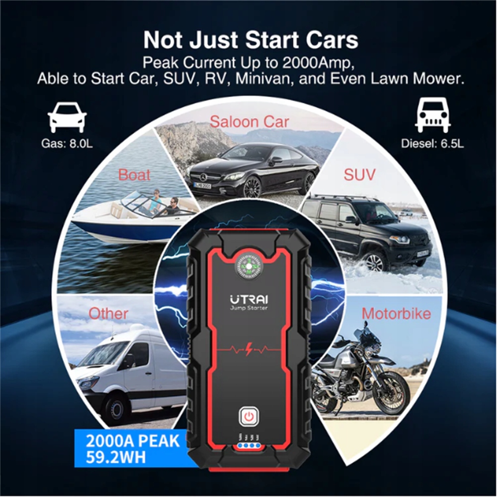 UTRAI ONE спасет не одну ситуацию, когда ваша батарея разряжается. С его помощью вы быстро заведете свой автомобиль, где бы вы ни находились-без ожидания, без чьей-либо помощи. Он также имеет Quick Charge 3.0 это быстрая зарядка, с помощью которой вы будете заряжать планшет, телефон или устройство с питанием от 12V.