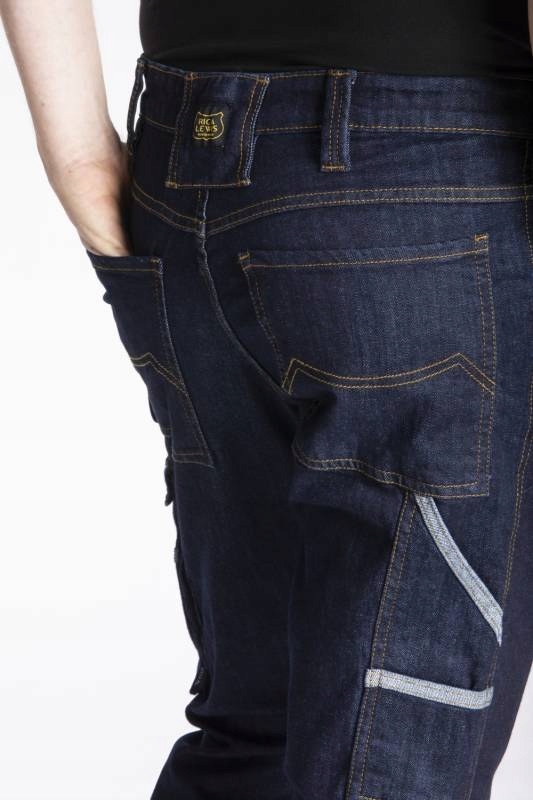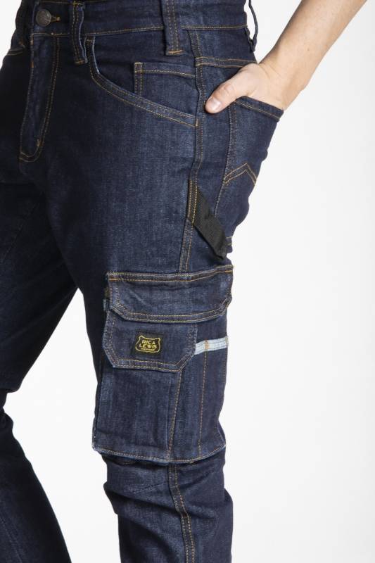 брюки RICA LEWIS JOB Work, рабочие джинсы с несколькими карманами, высокая талия, удобный карман для мобильного телефона, правая нога с зажимами до колен, двойной внутренний пояс с нескользящей резинкой, прямые ноги с усилением колена, застежка – молния, усиленный шаг и тройная строчка-гарантированная прочность брюк. Регулируемая длина штанины благодаря двойному подолу.