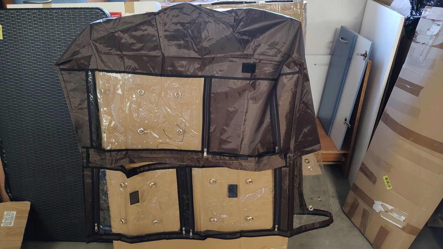 Клетка для кроликов будет полностью покрыта изолирующим и водонепроницаемым защитным чехлом. Таким образом кролики защищены от дождя, ветра и низких температур, позволяя им чувствовать себя уютно, как в пещере.