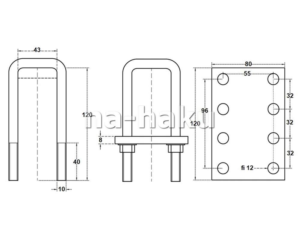 - зажим, скоба квадрат M10 - 2 шт.