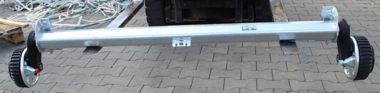 тормозная ось для прицепа компании AL-KO. DMC 1500 кг расстояние между колесными болтами 5x112. Усиливается на резиновых торсионных стержнях, которые повышают безопасность вождения. Ось предназначена для тяжелых тормозных прицепов. Максимальное давление на ось - 1500 кг. Расстояние между зажимными отверстиями: 1200 мм, расстояние между барабанами 1650 мм, расстояние между колесными болтами 5x112.